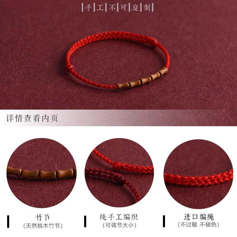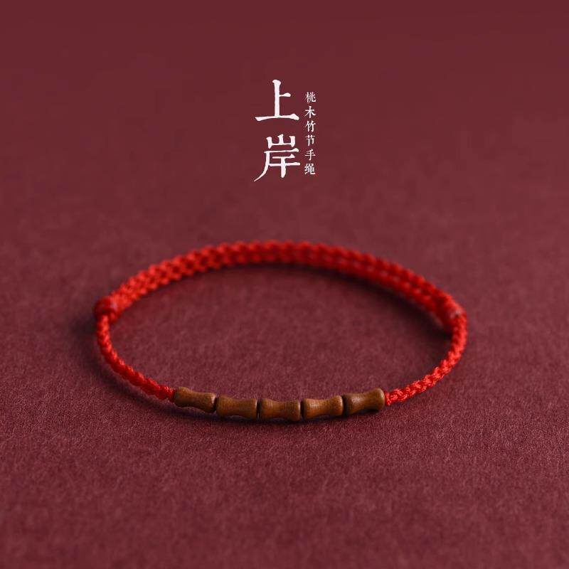 老桃木上岸竹节朱砂红绳手链本命年转运手串去霉运手绳护身手绳