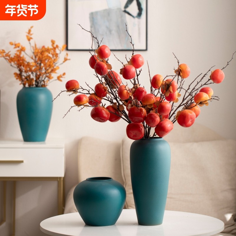 景德镇现代简约陶瓷花瓶绿色粗陶陶罐客厅民宿酒店电视柜装饰摆件