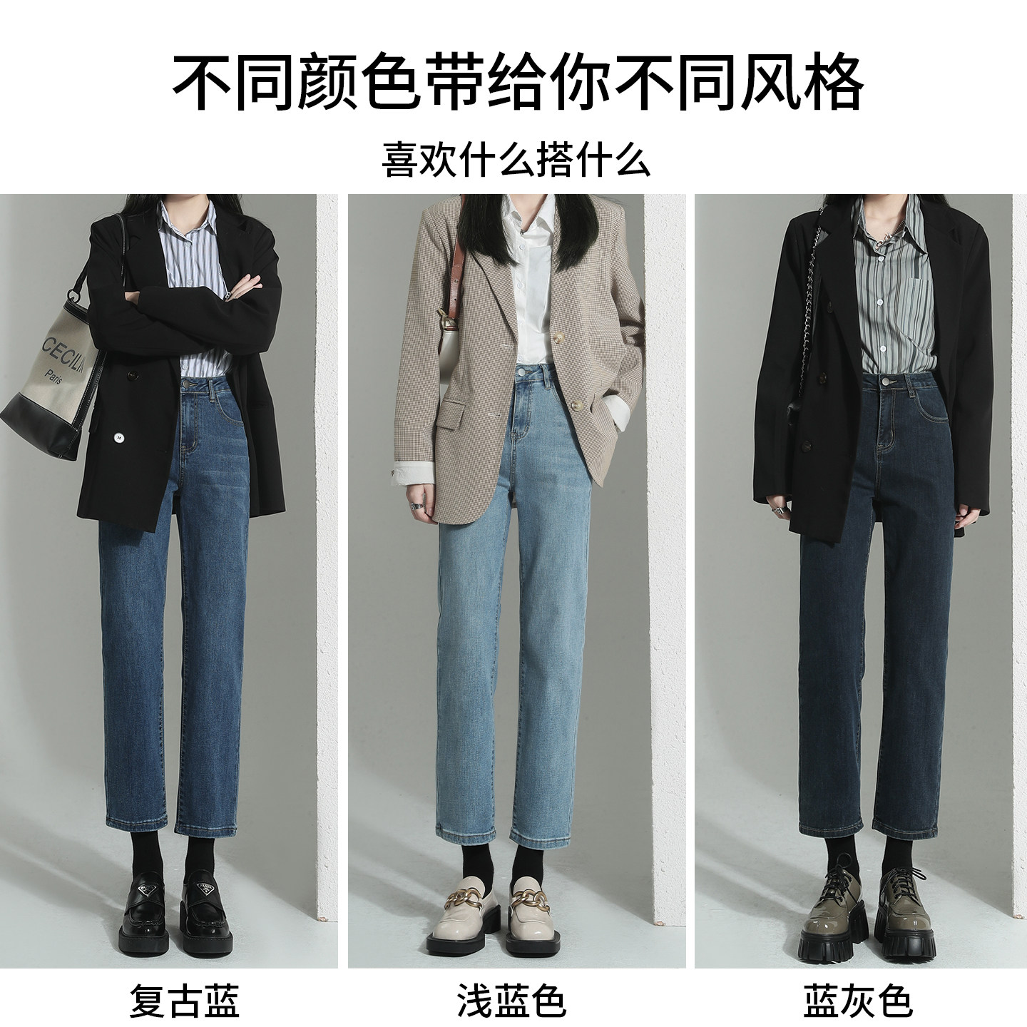 直筒牛仔裤女秋冬2025年新款高腰显瘦八九分小个子加绒烟管裤子