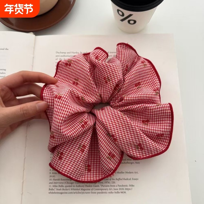 时尚韩版格子樱桃大肠圈ins风发带高马尾头绳女扎头发橡皮筋格纹