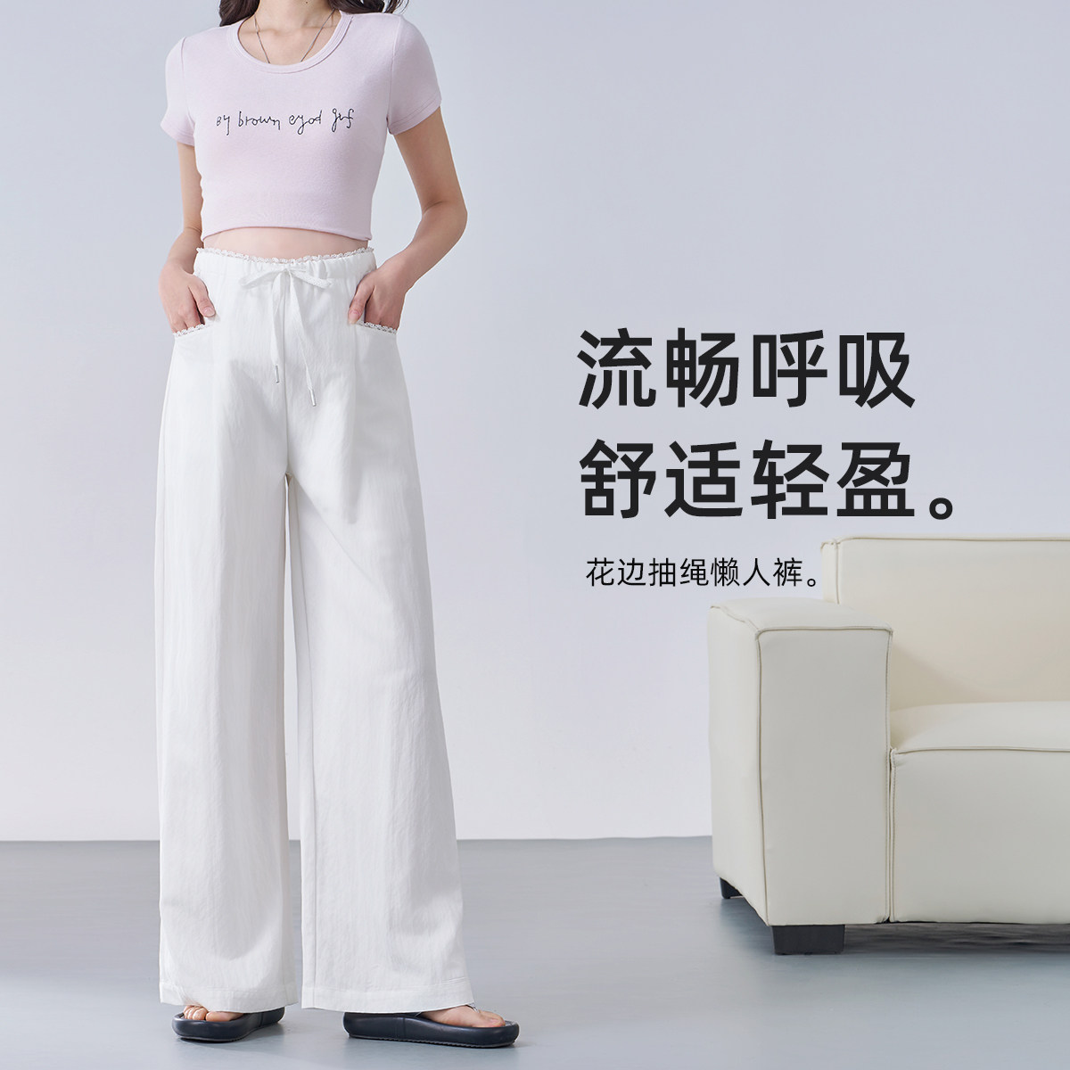 浪莎孕妇裤子夏季外穿2026新款亚麻裤百搭直筒宽松舒适休闲阔腿裤