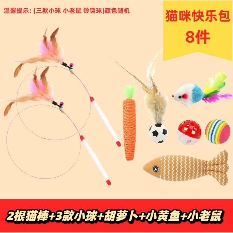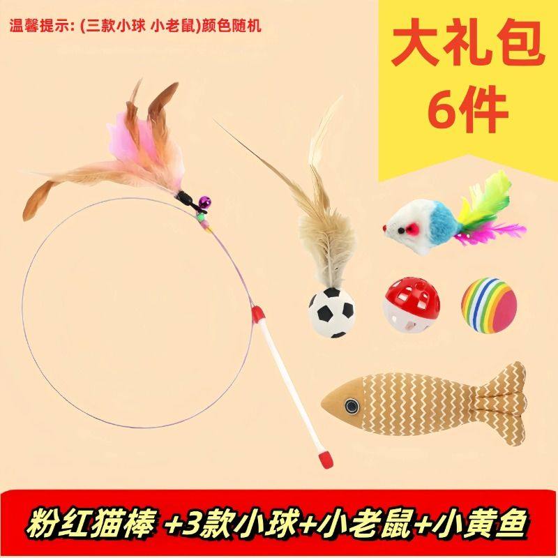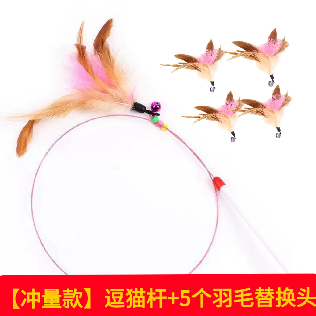 逗猫棒新款猫咪玩具彩色羽毛带铃铛吊绳不易折自嗨神器猫玩具