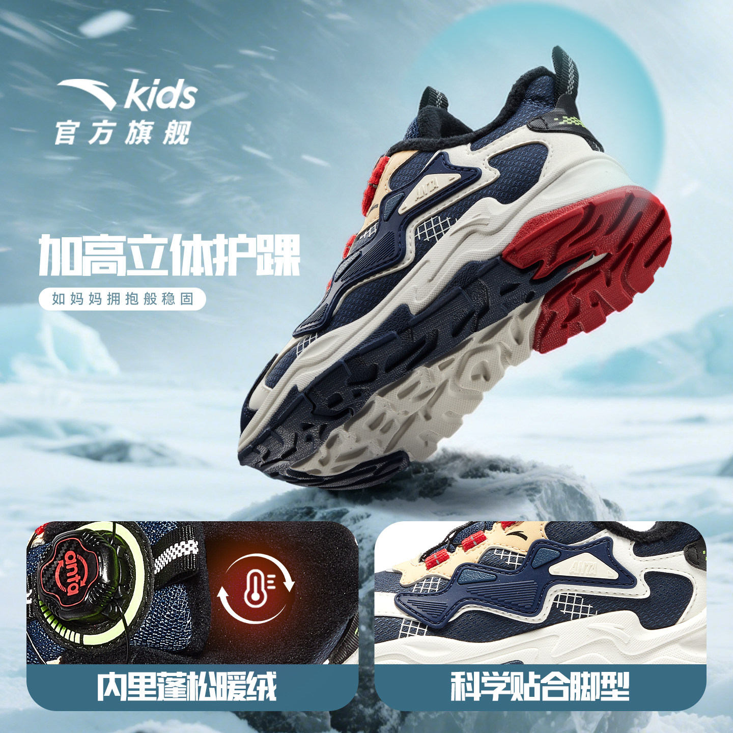安踏儿童男小童棉鞋2025冬季新款运动鞋防滑户外鞋二棉旋钮童鞋