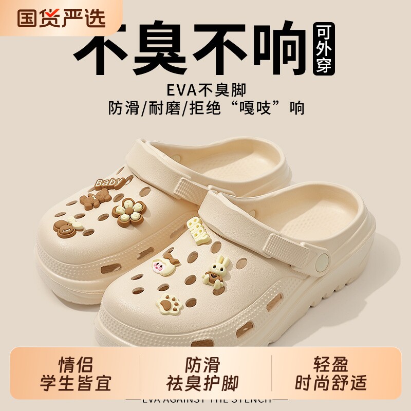 厚底洞洞鞋女款夏季外穿2025新款防滑防臭海边沙滩踩屎感凉拖鞋女
