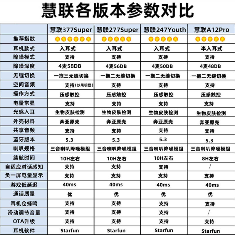 慧联五代377Super金标典藏款华强北8代247Youth顶配Pro3蓝牙耳机