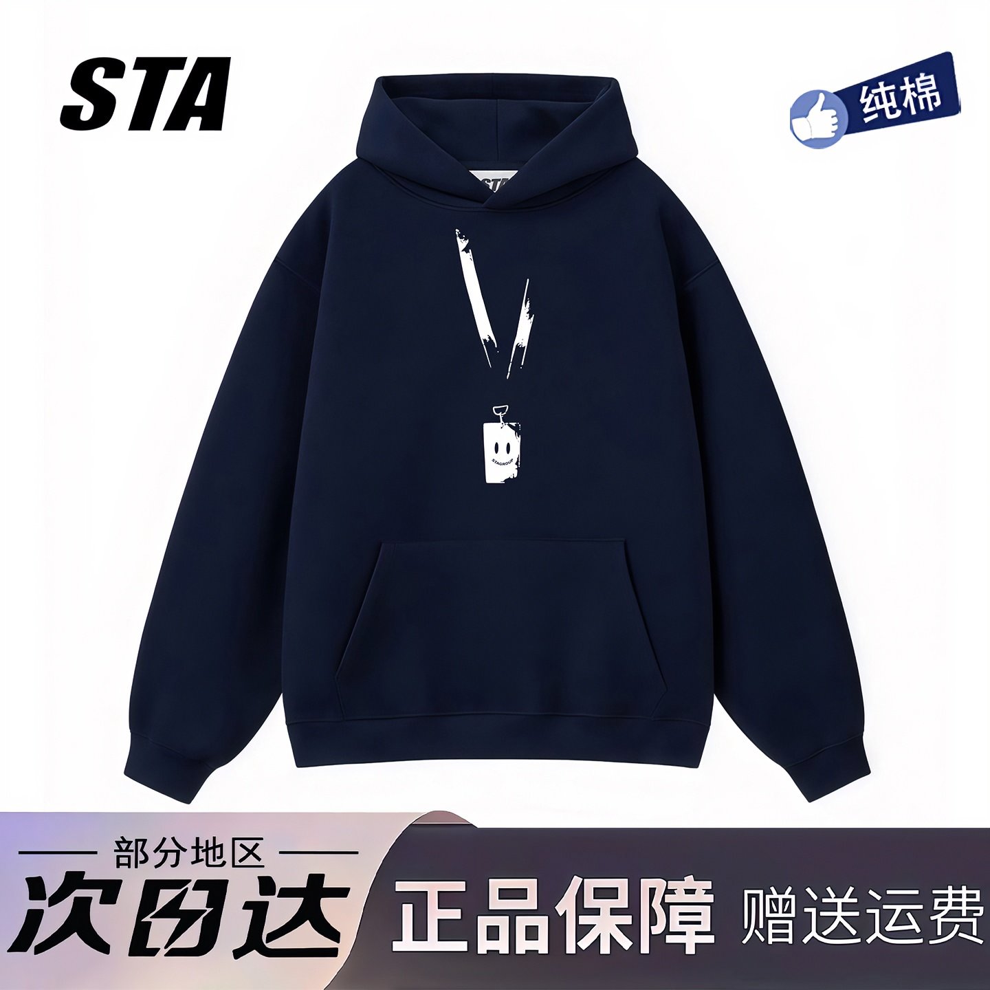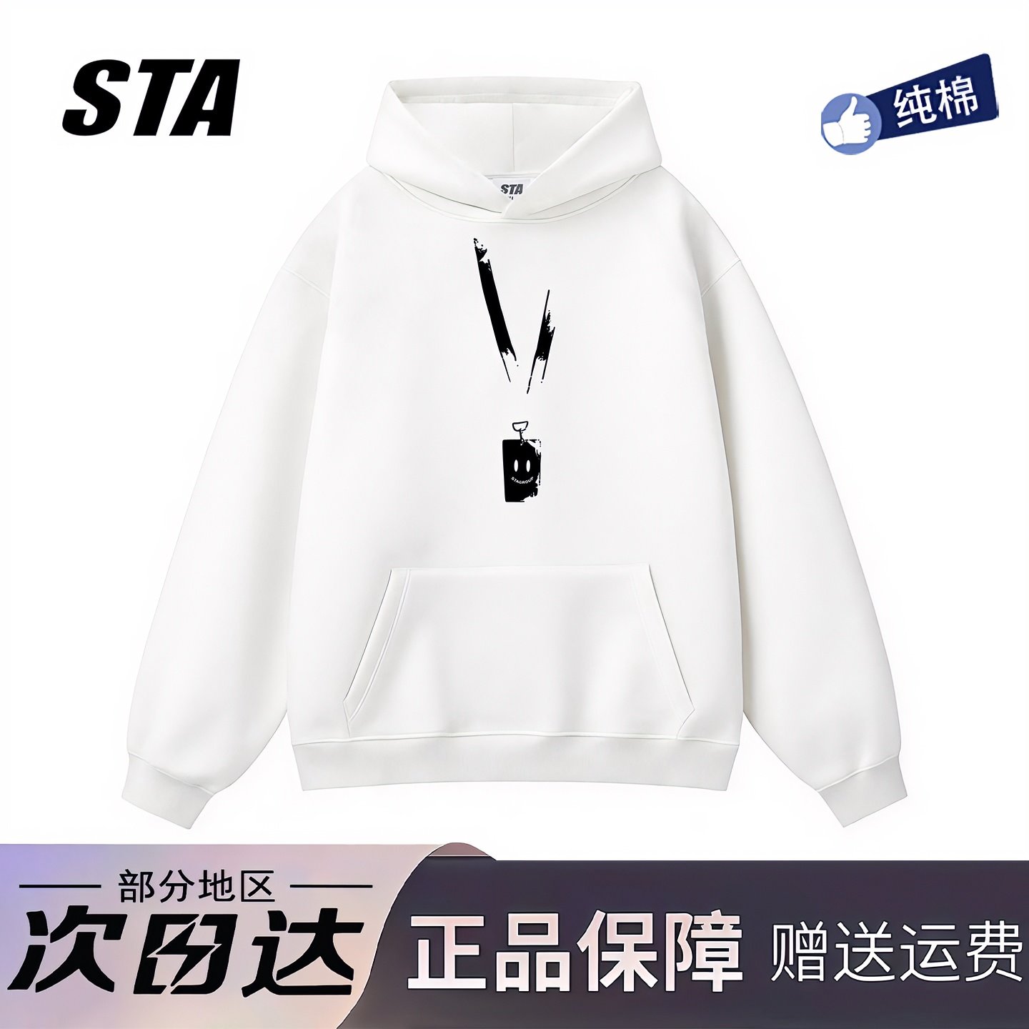 STA旗舰店美式潮牌重磅纯棉连帽卫衣男女秋冬季高街情侣黑色外套