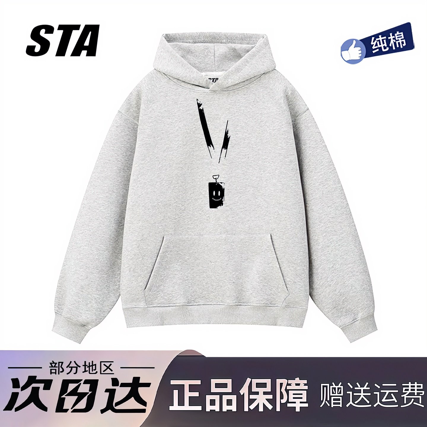STA旗舰店基础小字母印花连帽卫衣男女美式潮牌重磅纯棉灰色外套