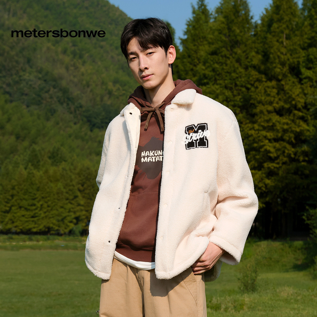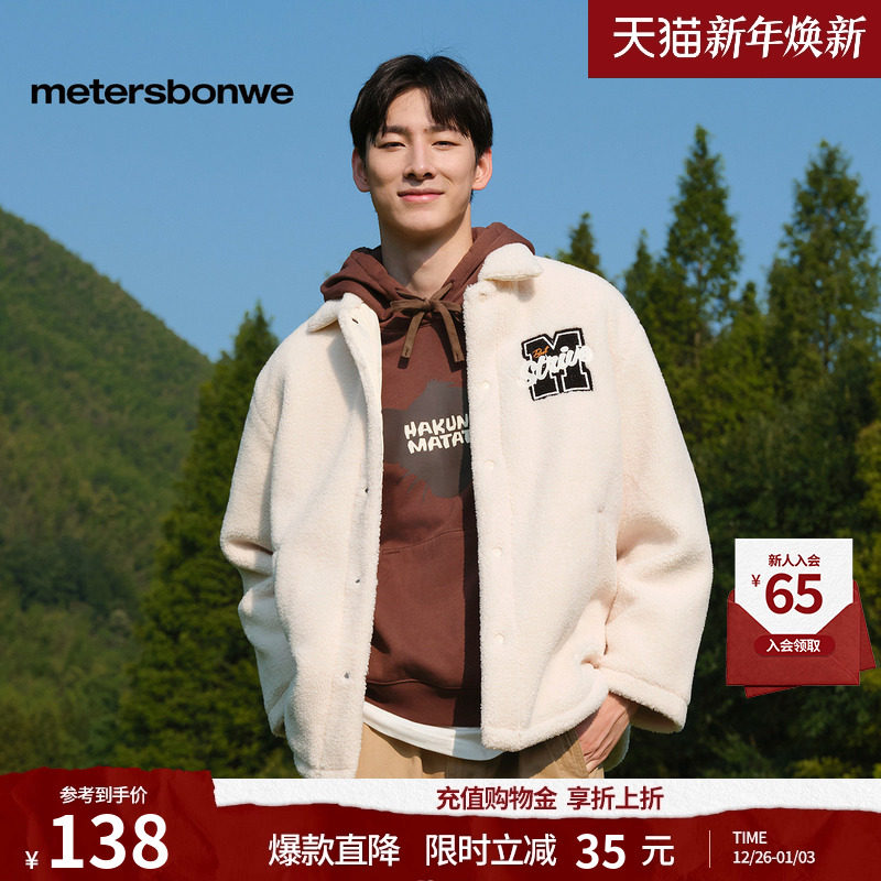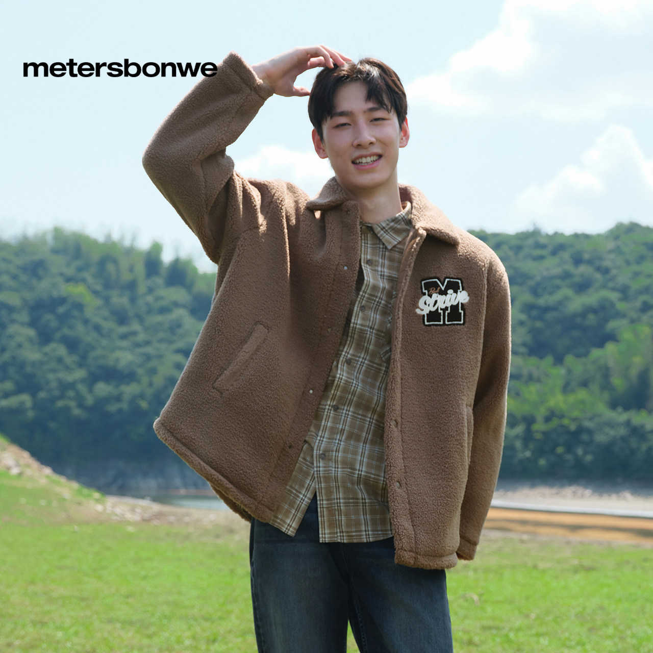 美特斯邦威夹克外套男士秋季新款休闲情侣舒适羊羔绒宽松百搭外套