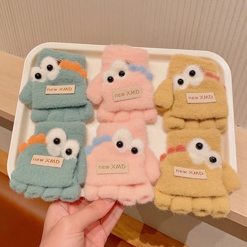 宝宝手套0-2岁秋冬季保暖男童婴儿半指分指露指女童幼儿童可爱萌
