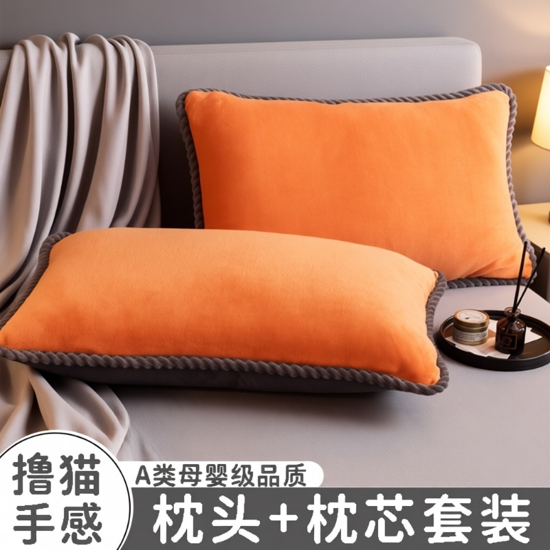 花花公子加厚牛奶绒枕套一对装48x74冬季家用珊瑚绒单人枕头套