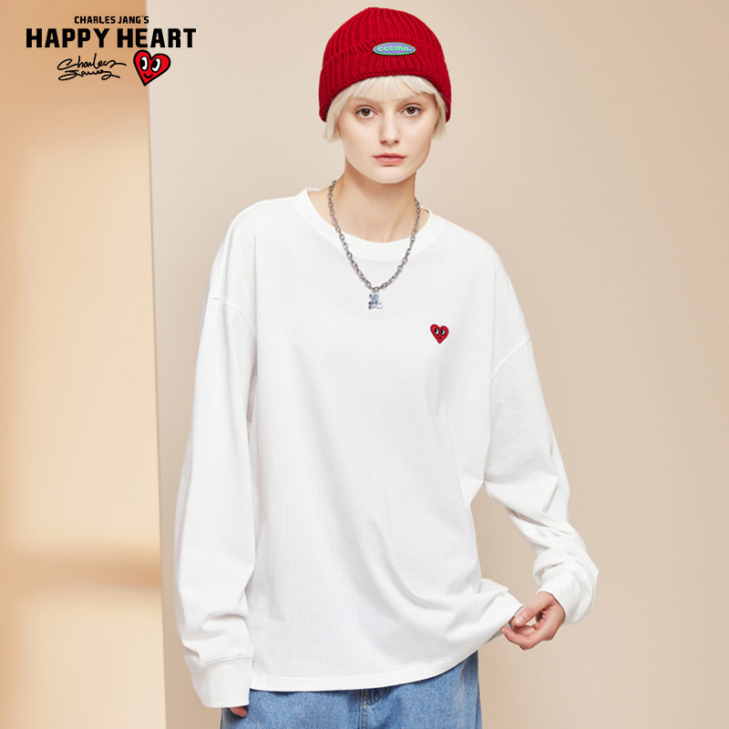 查尔斯桃心 长袖t恤男春秋季宽松纯棉爱心纯色上衣服内搭打底衫
