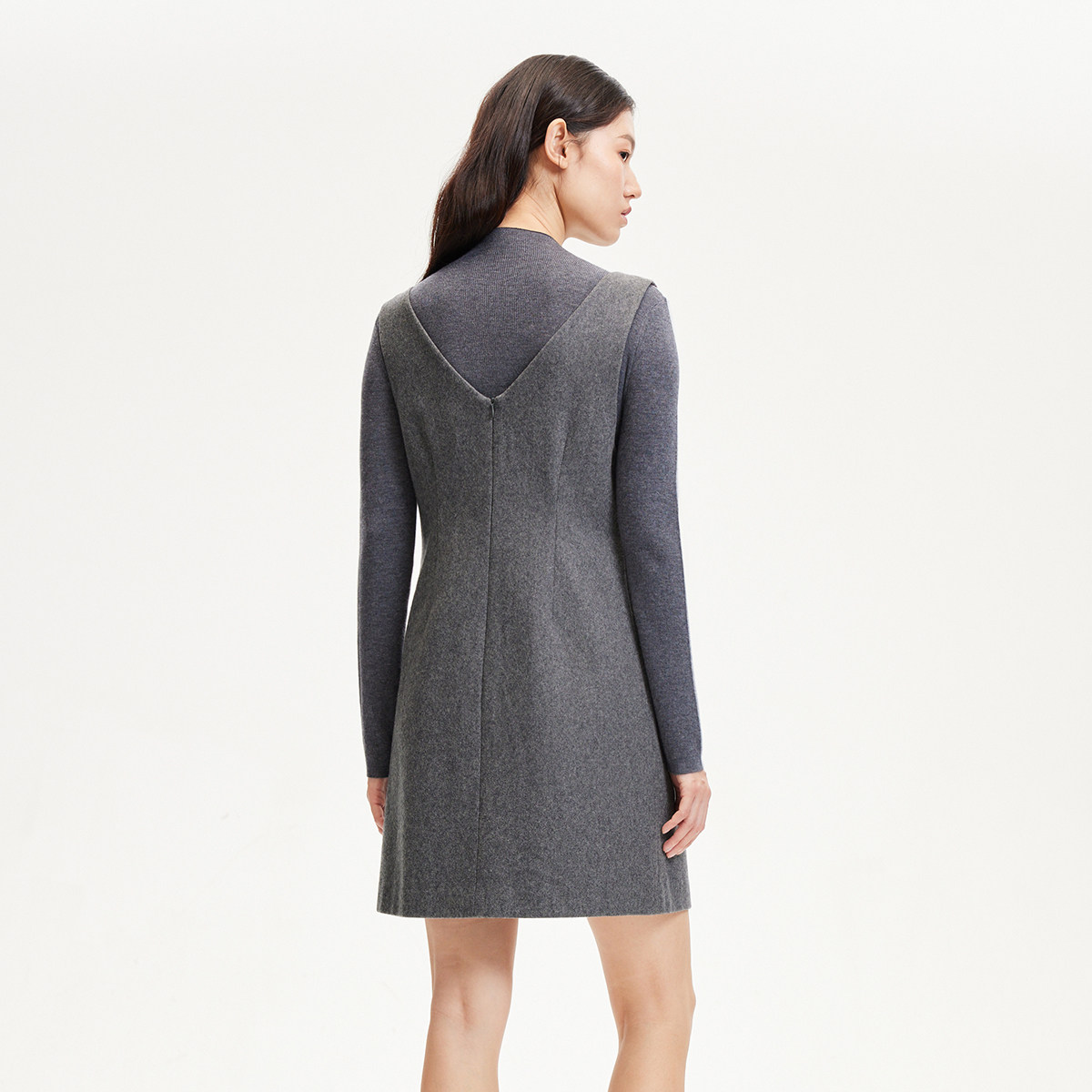 Vero Moda连衣裙秋冬含羊毛软糯A版无袖V领钉珠连衣裙32437A062