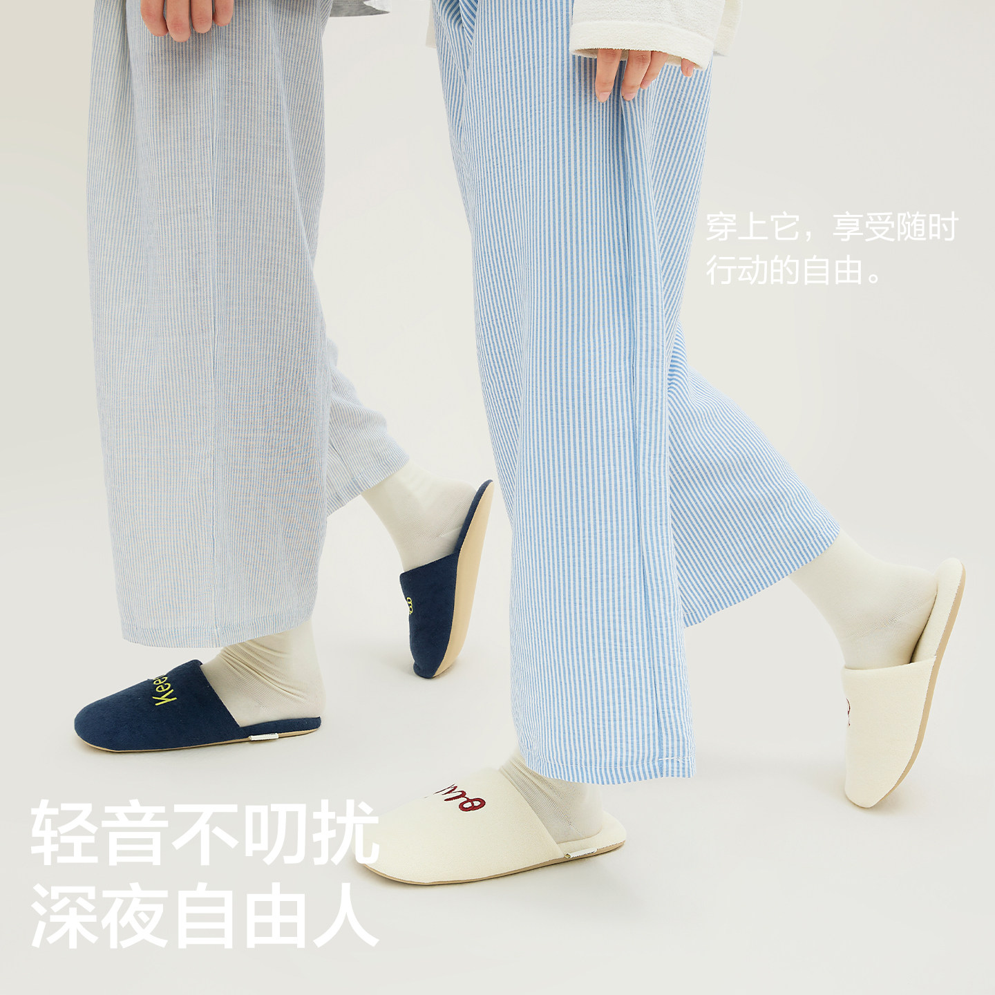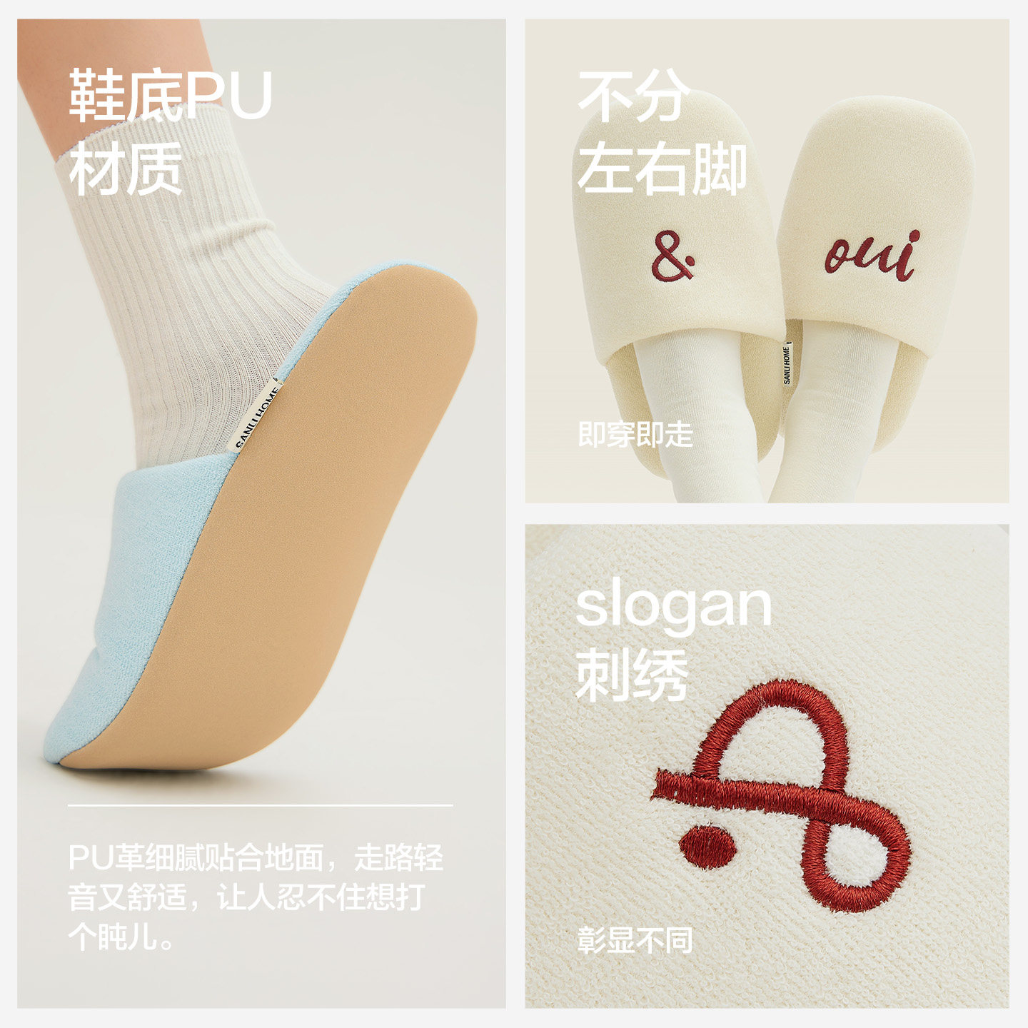 三利静谧时光棉拖鞋女2025新款秋冬家居室内防滑男轻音情侣地板拖
