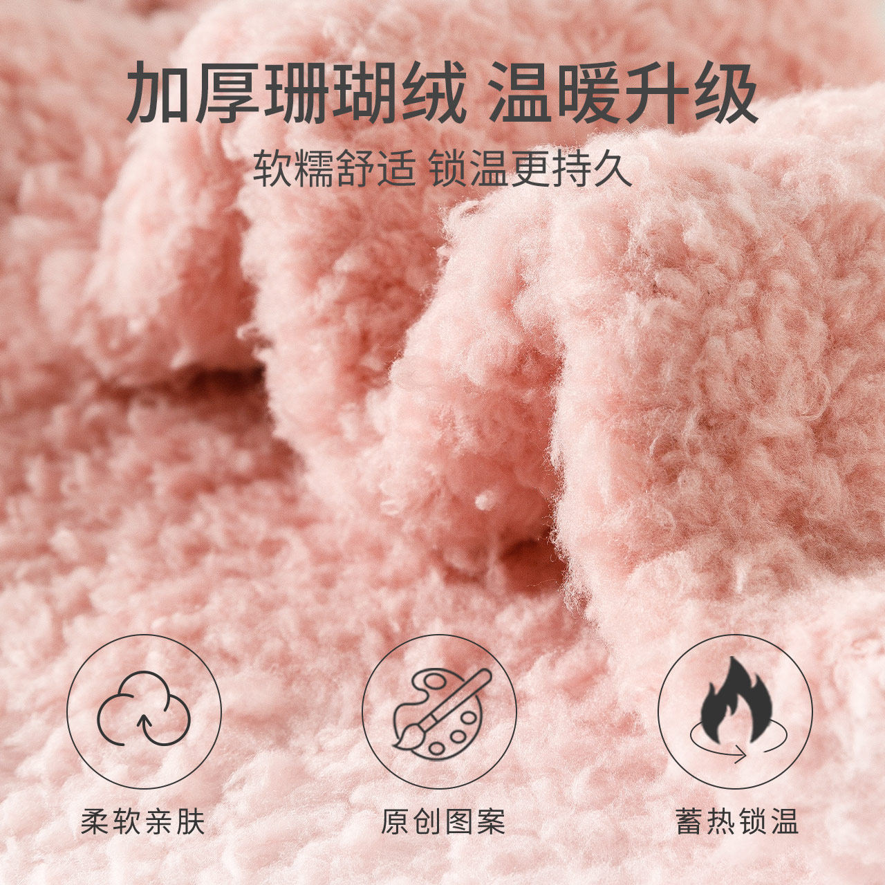 珊瑚绒袜子女冬季加厚加绒保暖地板袜睡眠月子袜秋冬新款睡觉袜子