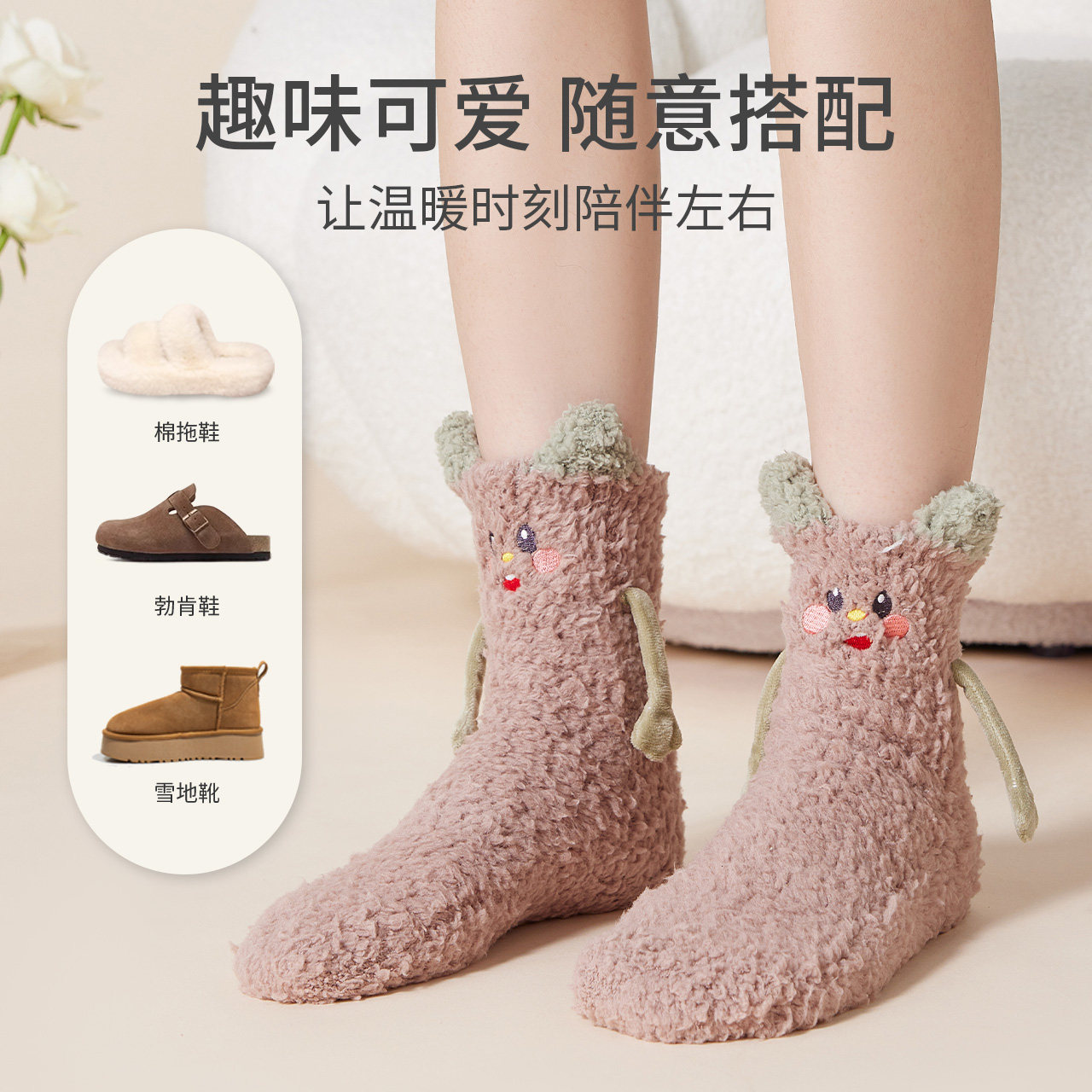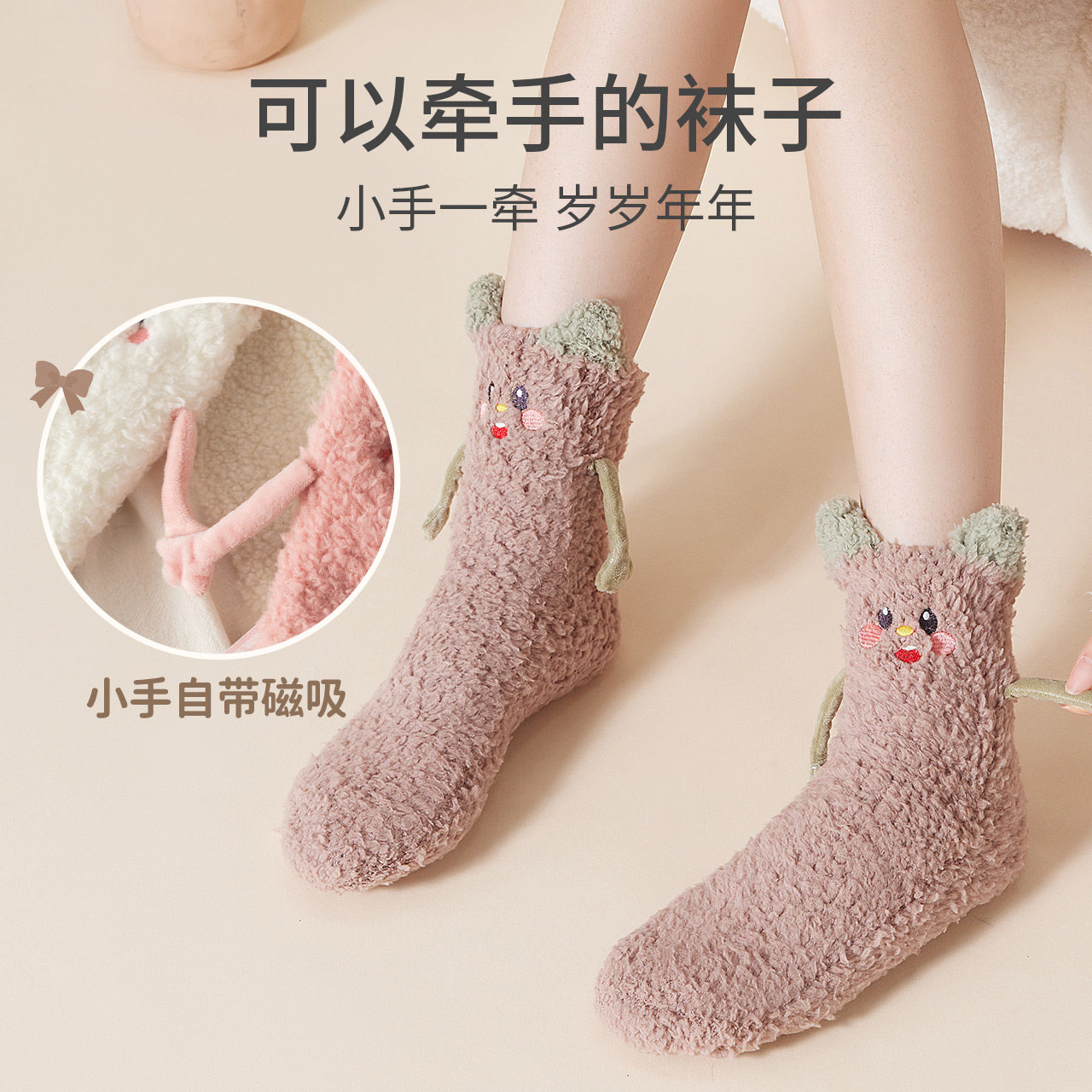 caramella袜子秋冬新款地板袜可爱卡通女袜睡眠袜女士保暖中筒袜