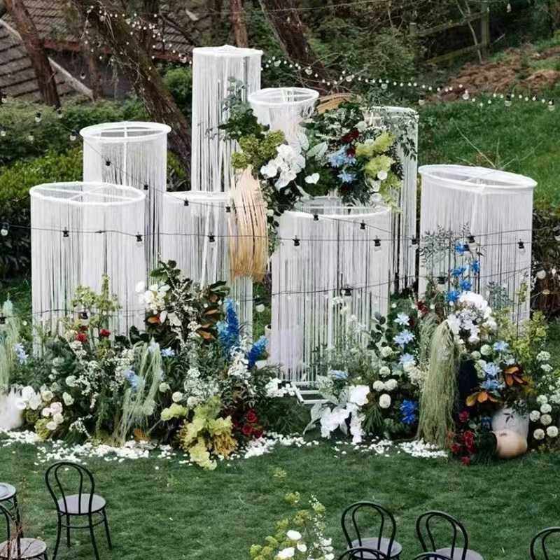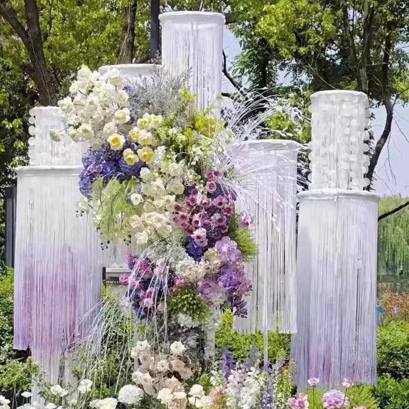 新款婚庆道具线帘圆环吊环架子圆形铁艺拱门路引珠帘装饰立杆伸缩