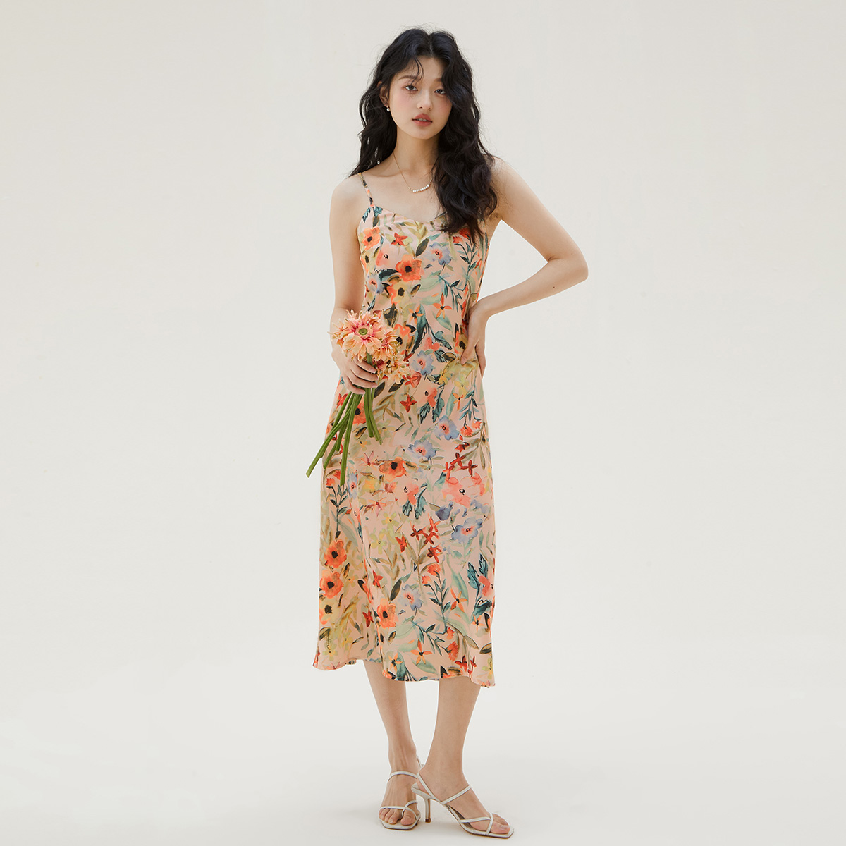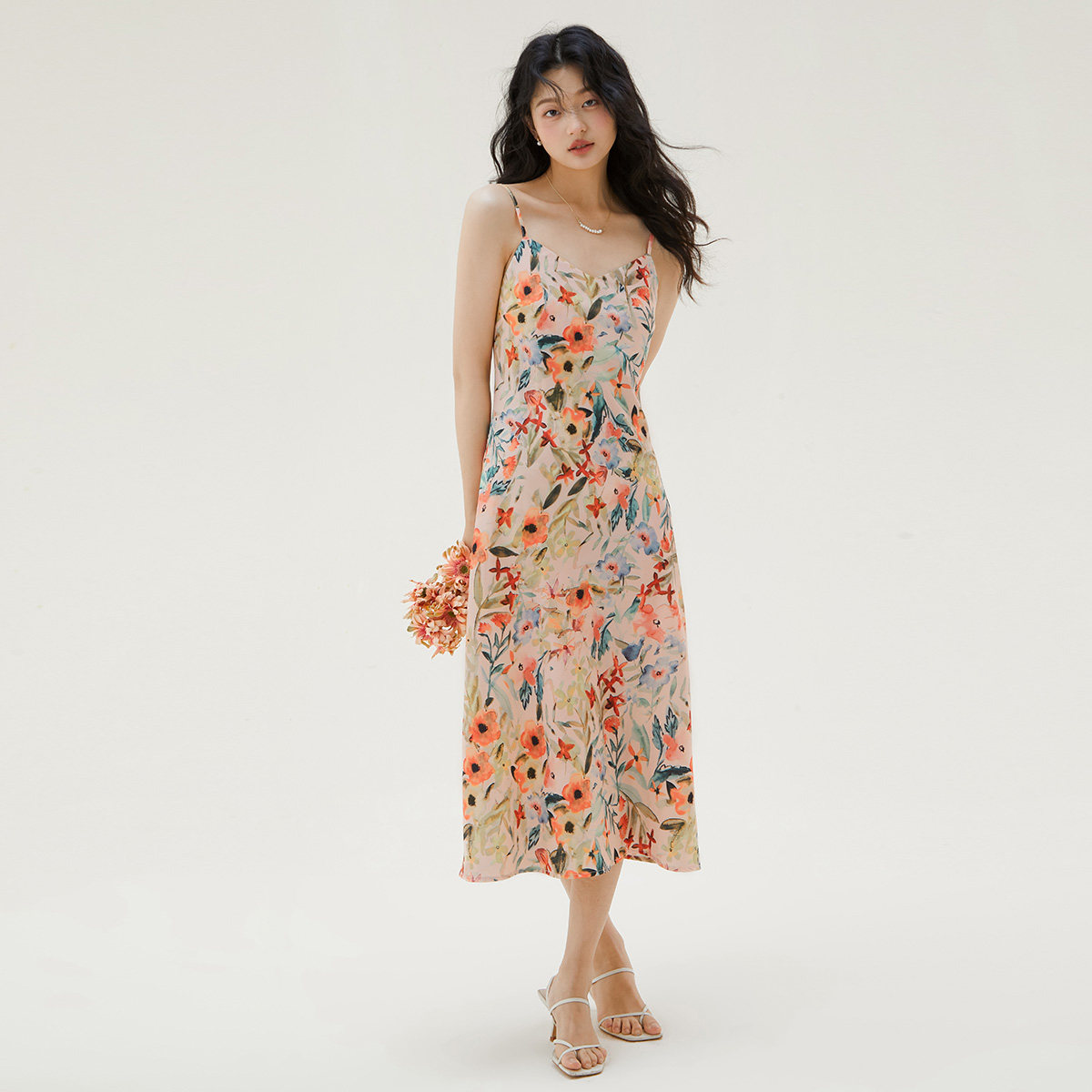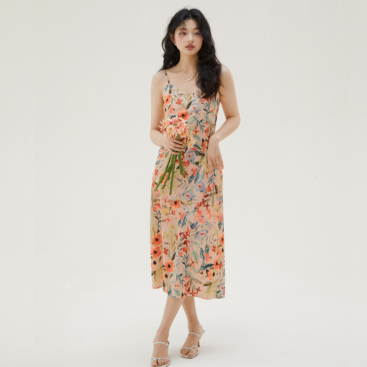 one more2025夏季新款法式吊带碎花裙v领连衣裙女高级感油画裙子