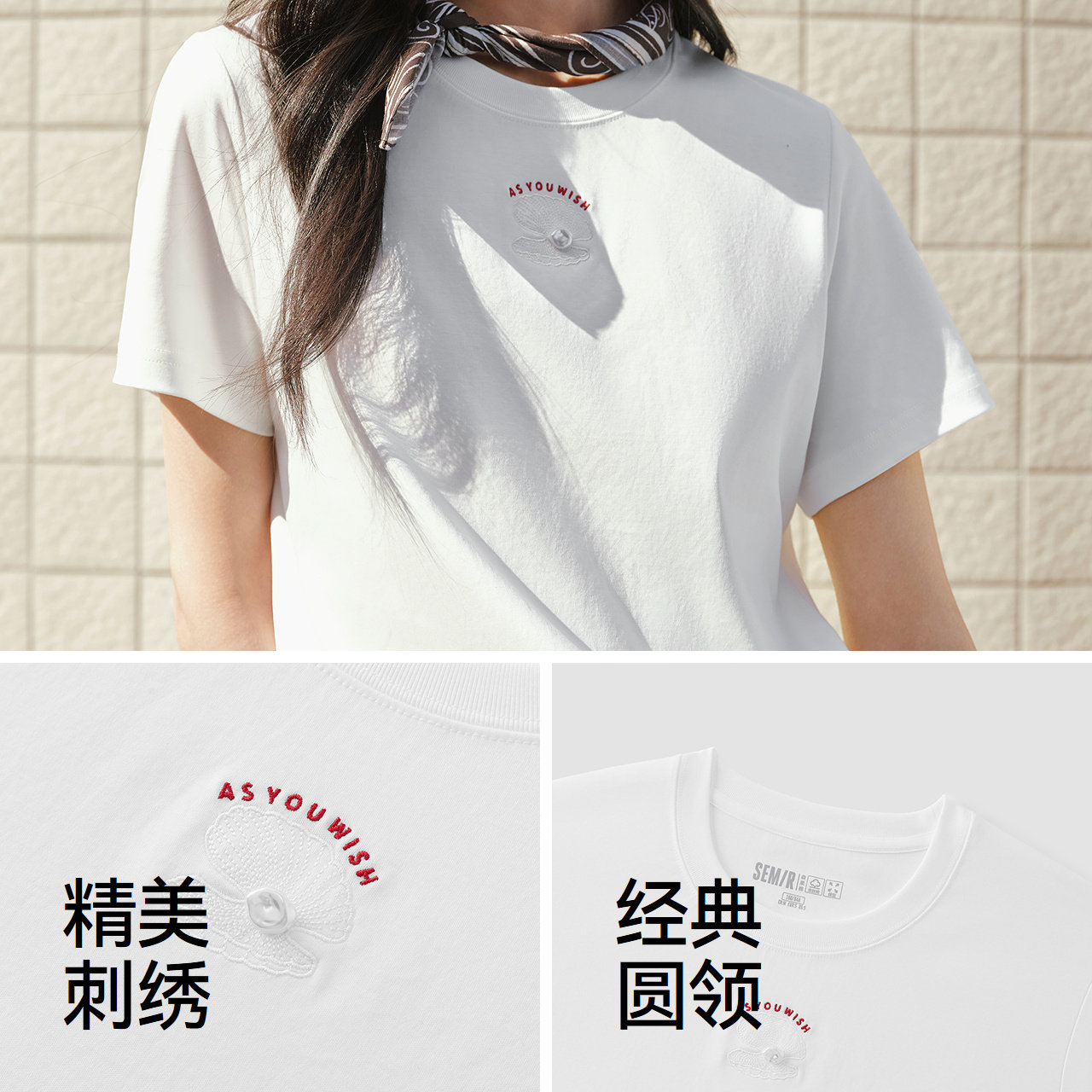 陈都灵|森柔|商场同款森马短袖T恤女夏季圆领刺绣2026新款休闲
