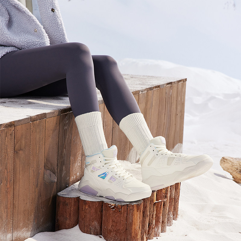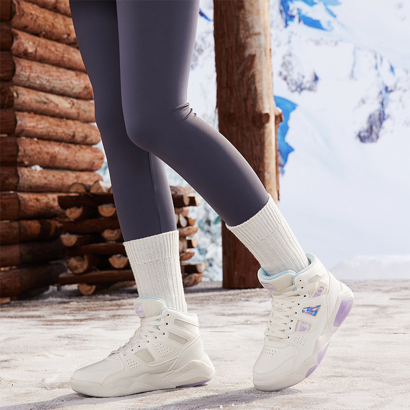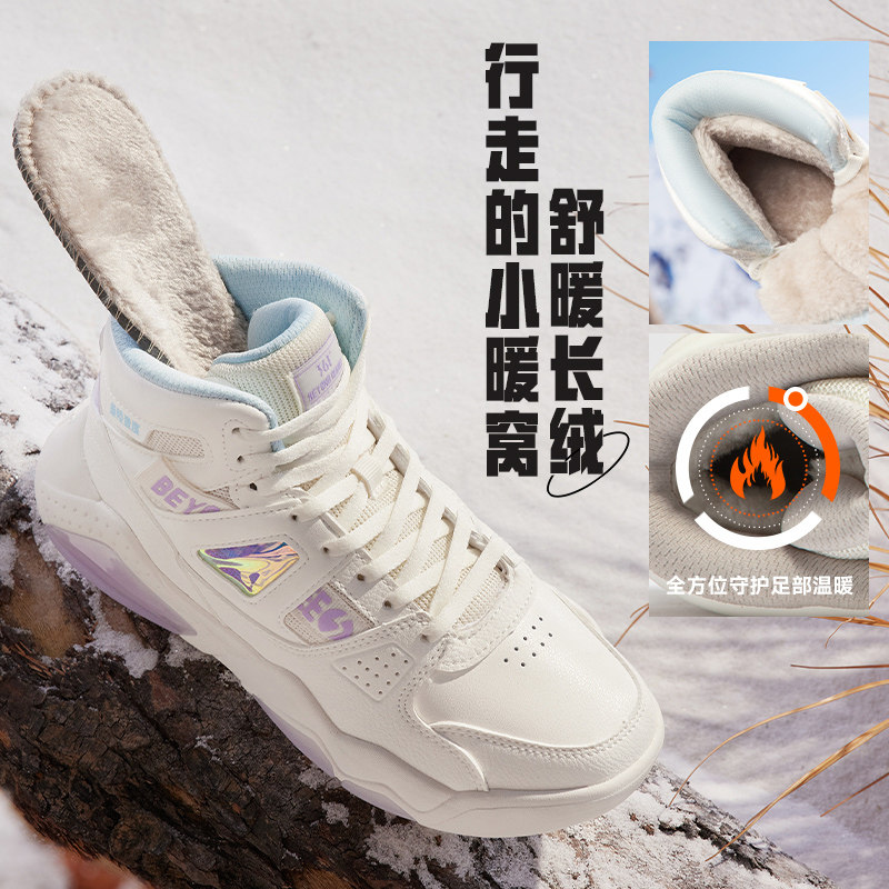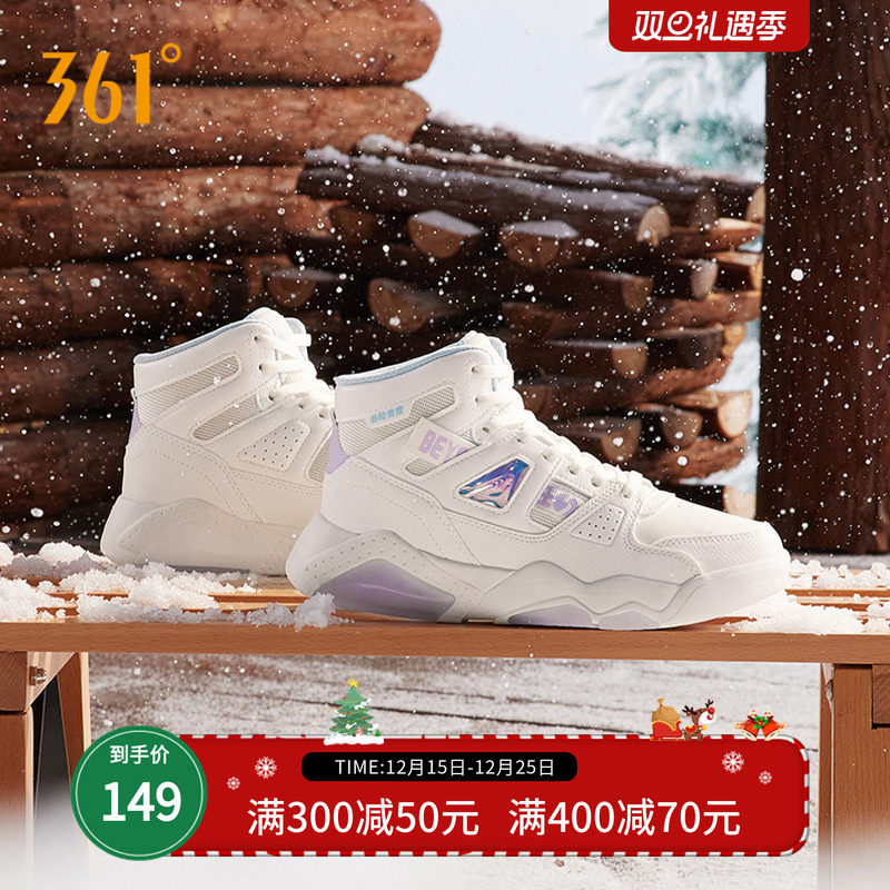 361度女鞋运动鞋2025冬季加绒保暖休闲鞋子革面防水高帮板鞋女款