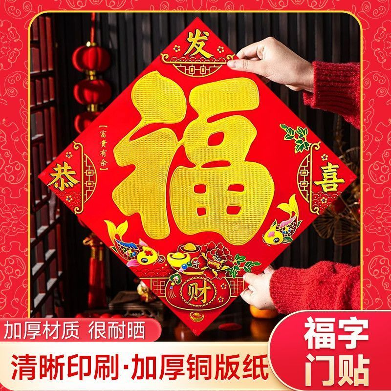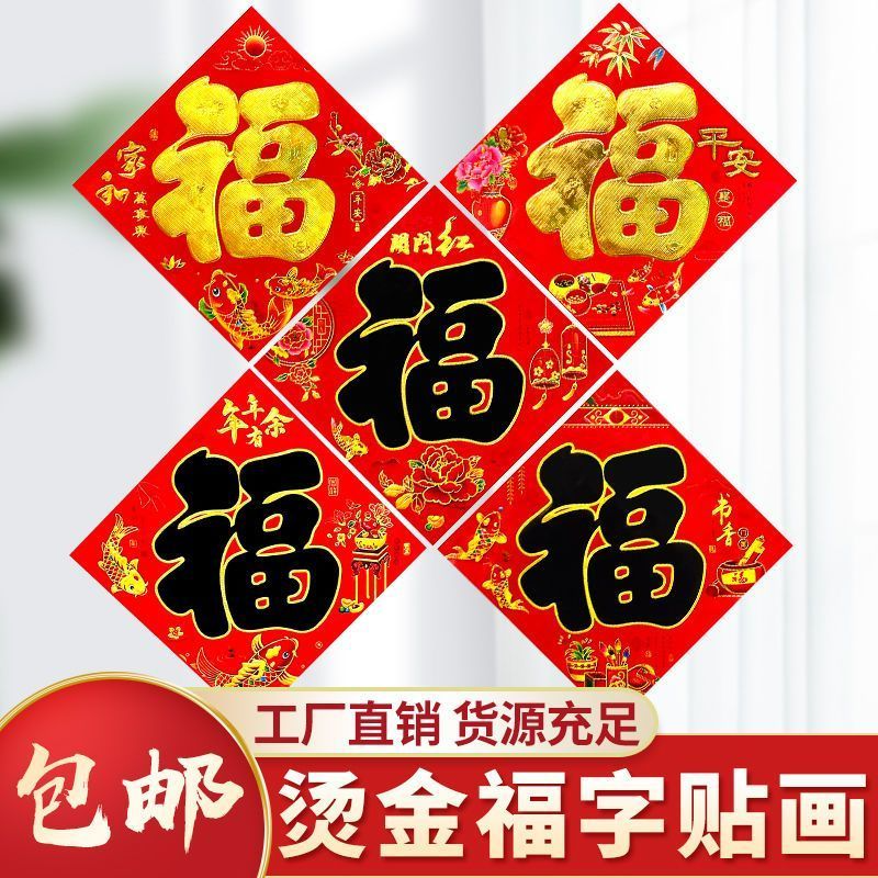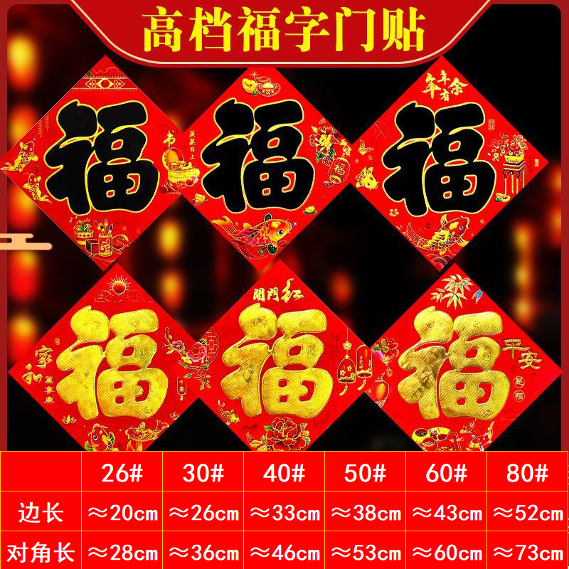 福字门贴马年2026新年大门窗贴春节烫金贴画农村加厚福贴墙贴对角