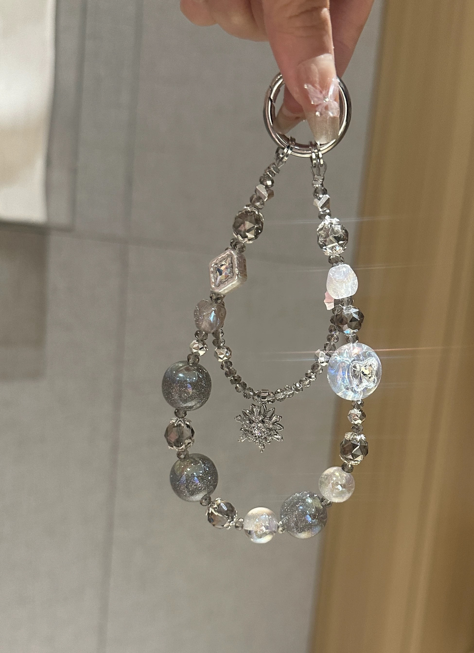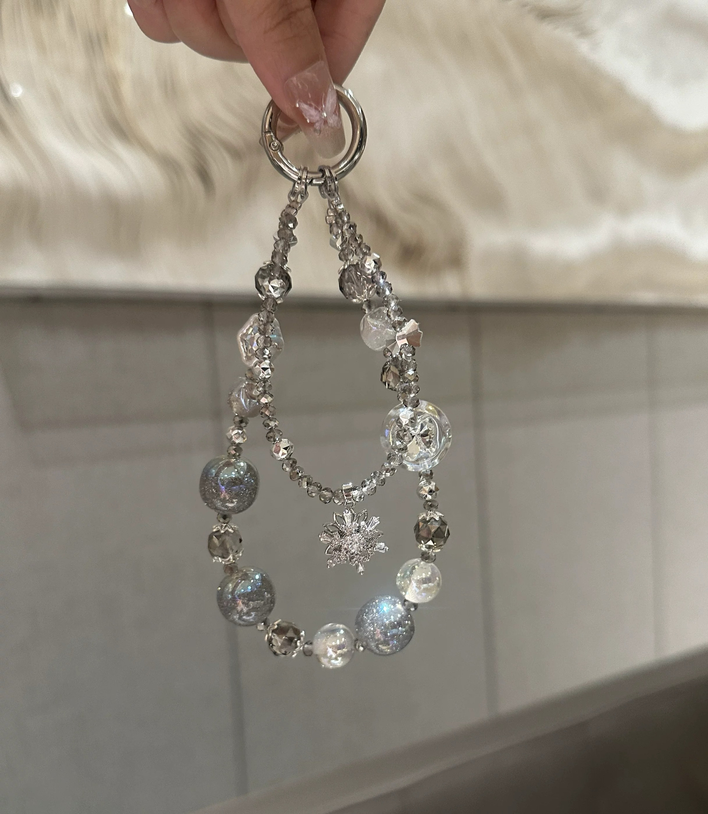 原创旋转雪花锆石手机挂绳双链设计水晶手机链轻奢高级挂手腕链条