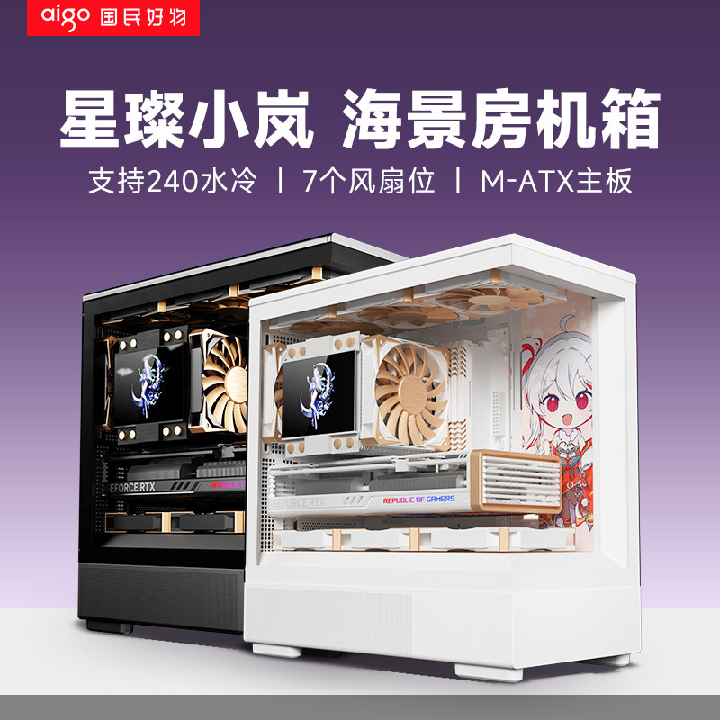 爱国者星璨岚小岚海景房机箱游戏电脑台式主机垂直风道水冷机箱