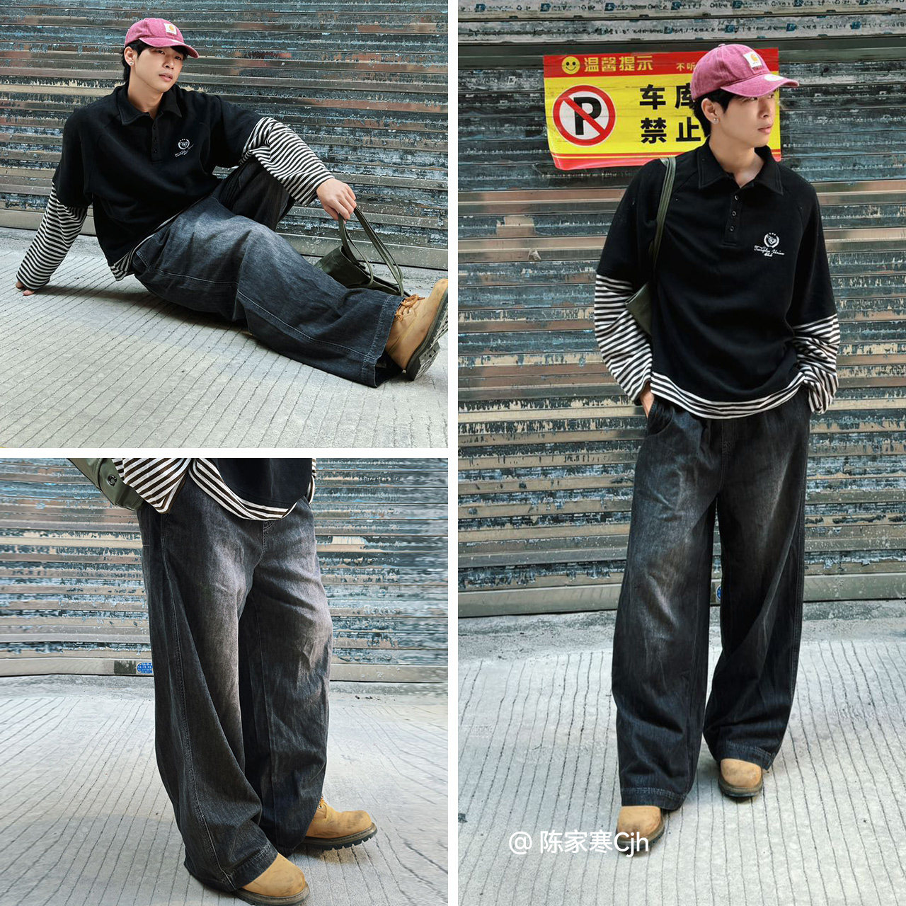 王安宇同款森马牛仔裤男做旧复古阔感弯刀裤宽松弧形裤2025冬新款