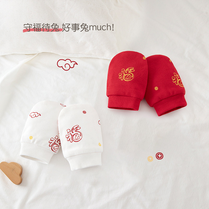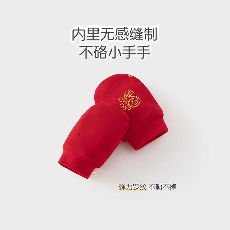 babylove新生儿护手套纯棉中国风宝宝防抓脸婴儿满月爬行用品