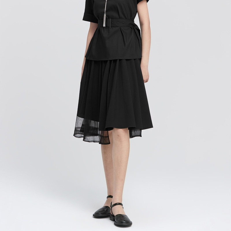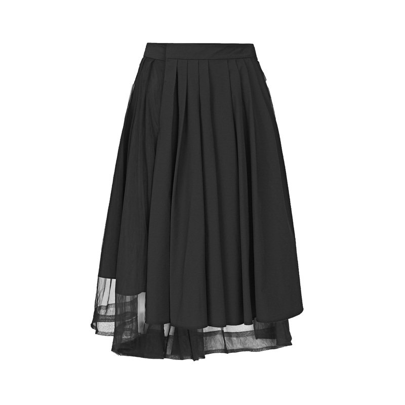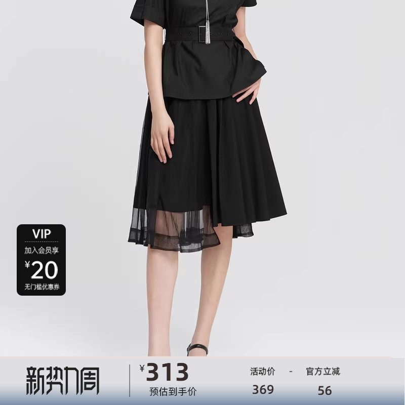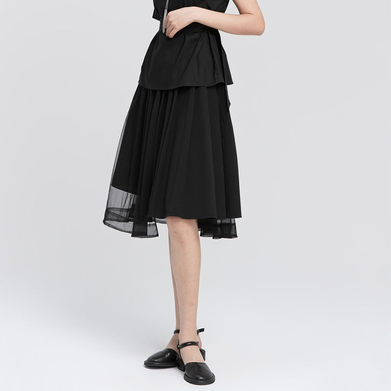sdeer圣迪奥女夏装半身裙子休闲网纱拼接不规则A字长裙S22281134