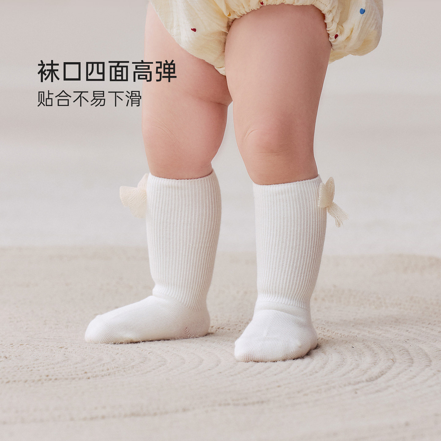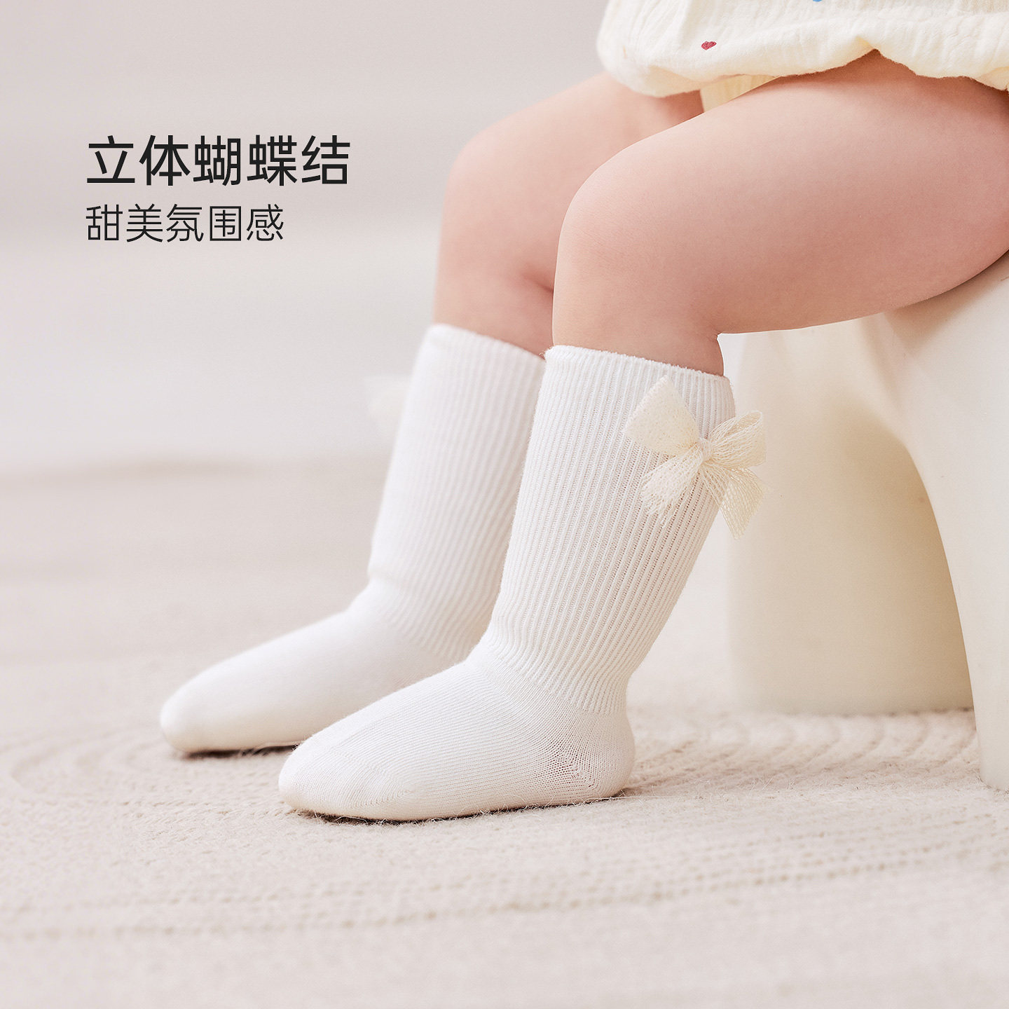 babylove女宝宝袜子春秋季婴儿中筒袜白色蝴蝶结百搭小腿袜弹力袜