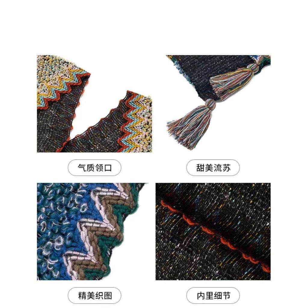 2023新款秋冬民族风斗篷女外搭旅行复古流苏吊坠针织披肩