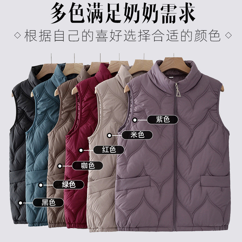 中老年人妈妈冬装羽绒棉马甲外套女奶奶春秋太太老人保暖衣服开衫