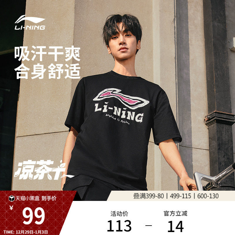 李宁短袖男士夏季官方半袖装运动上衣男装体恤宽松白色T恤