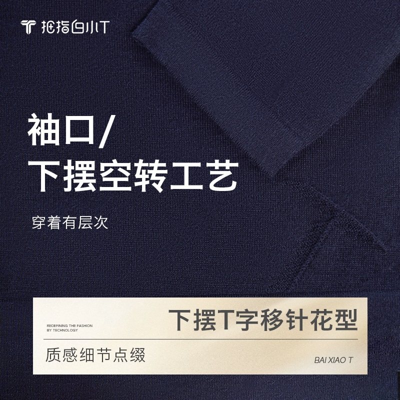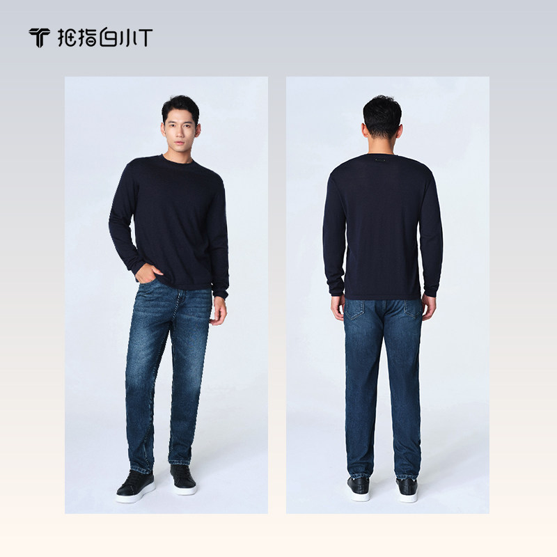 拇指白小T春季新款男士打底衫圆领高支纯羊绒长袖T商务休闲体恤
