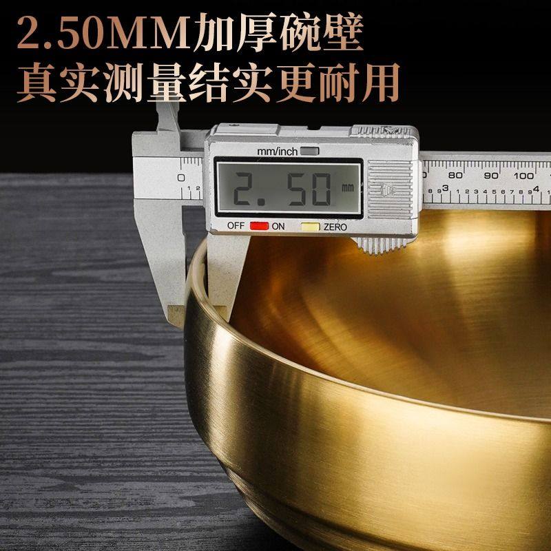 韩式不锈钢冷面碗双层防烫碗拌饭碗拉面碗加厚金色螺蛳粉碗大汤碗