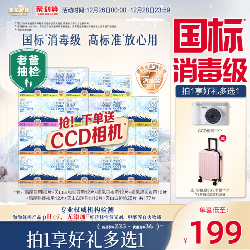 赠CCD相机【国标消毒级】淘淘氧棉天山白消毒级纯棉卫生巾组合