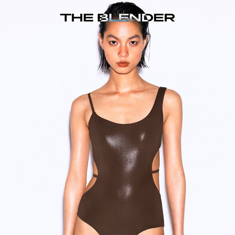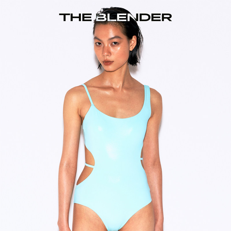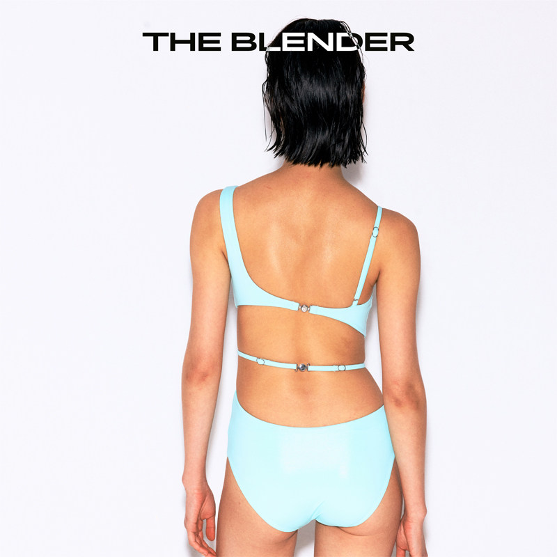 【新品】The Blender海边度假带胸垫露背不对称连体三角泳衣女