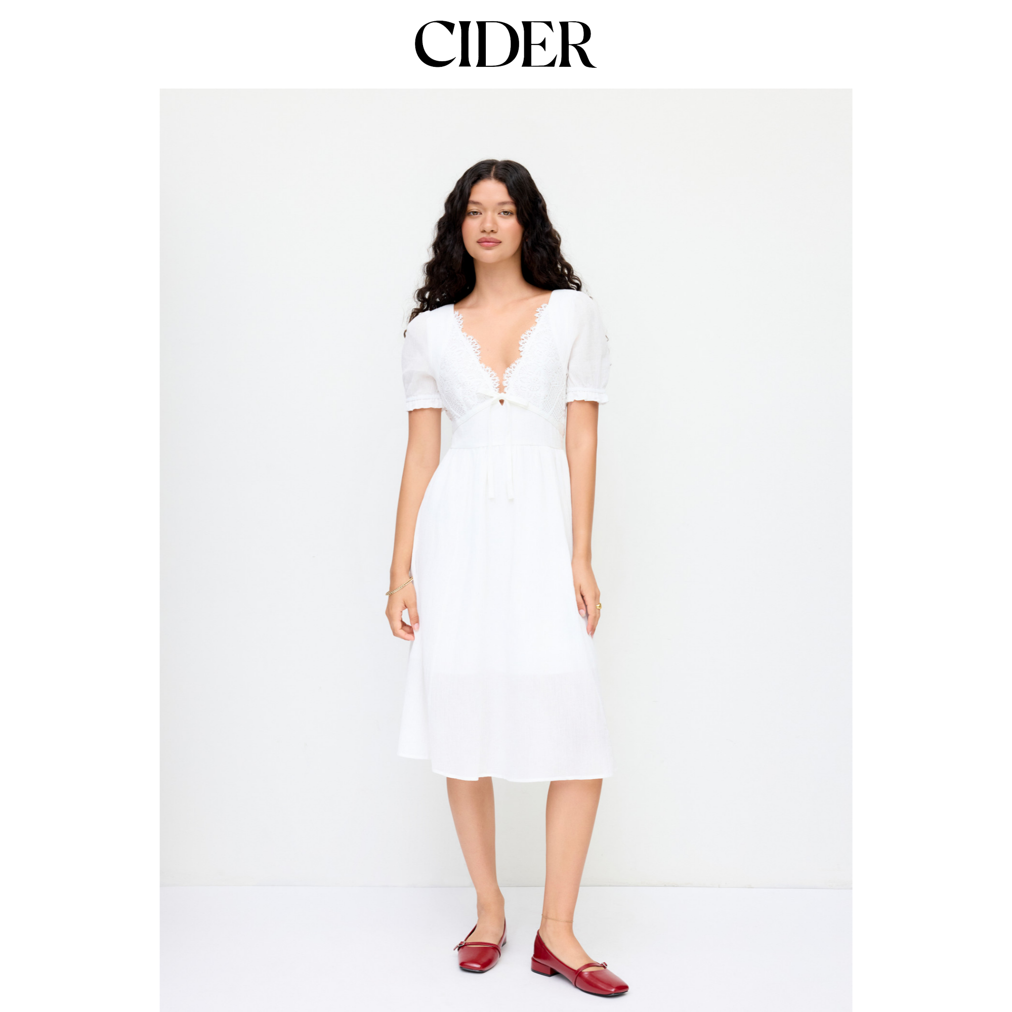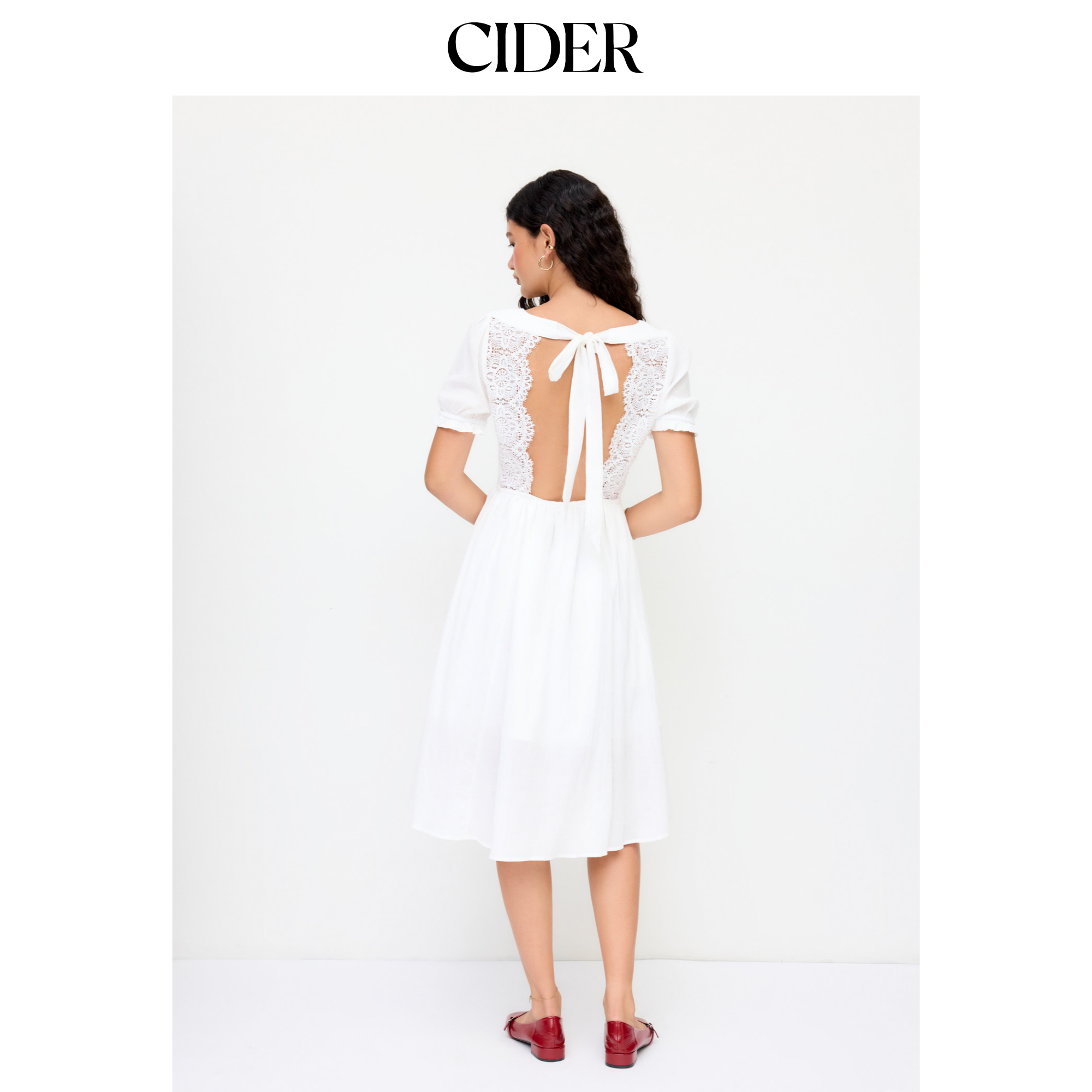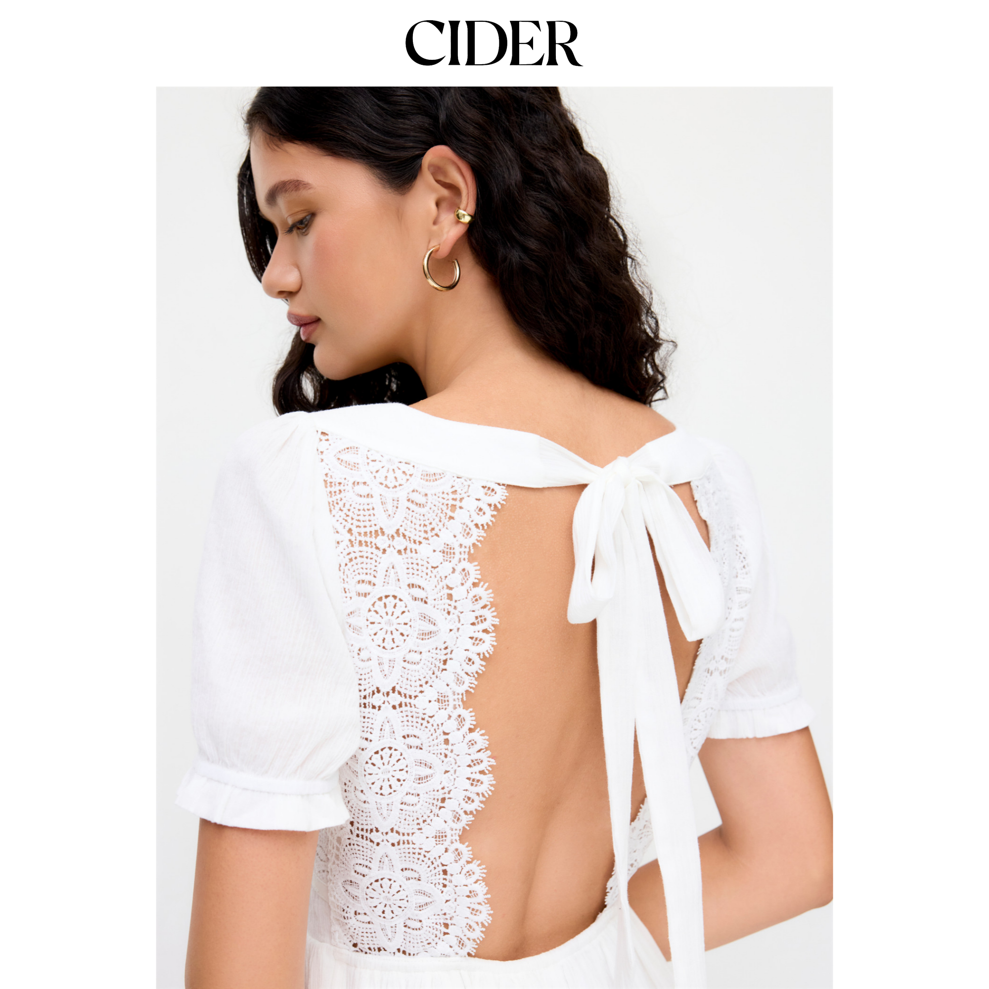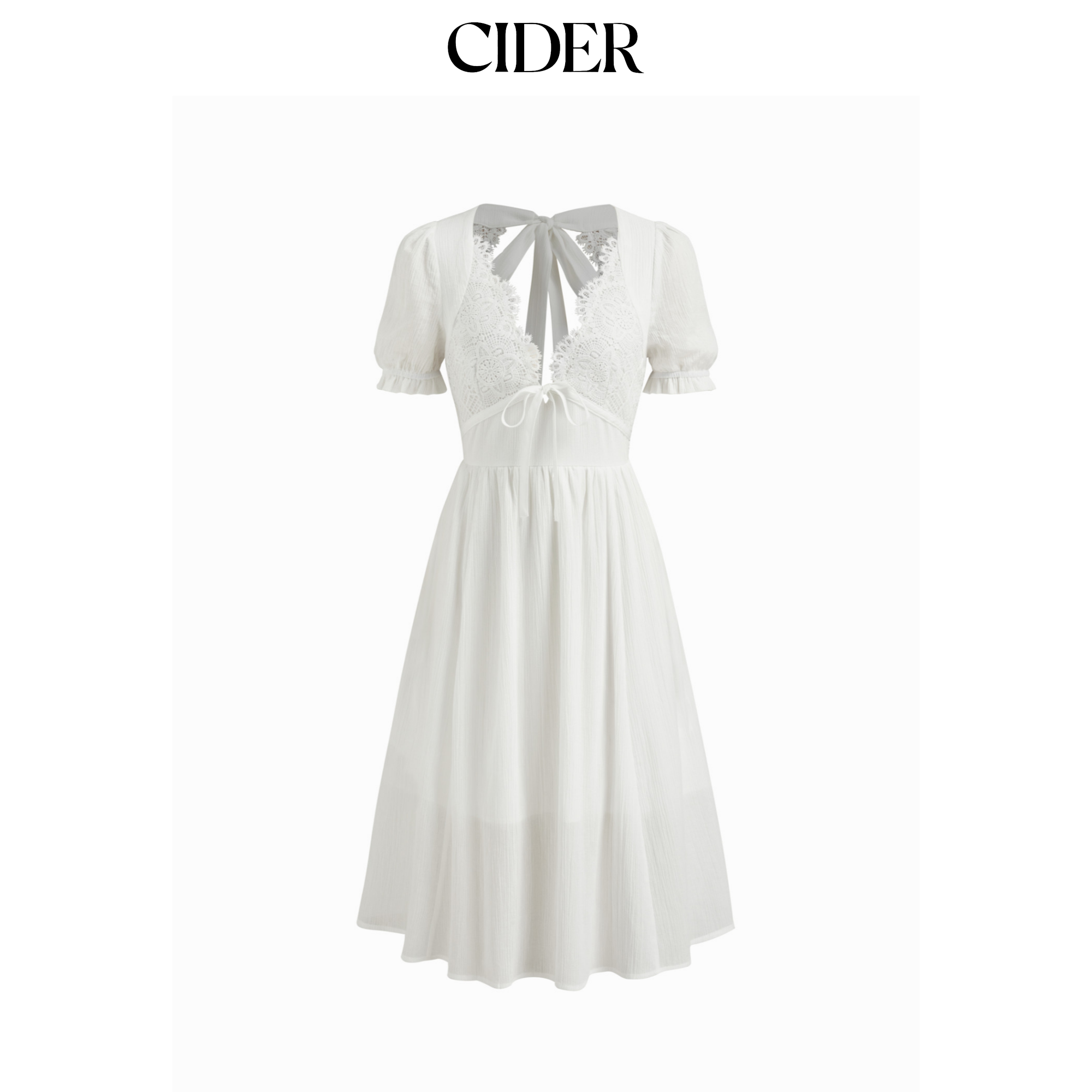 CIDER 棉质V领碎花蕾丝露背系带长连衣裙女装114770979