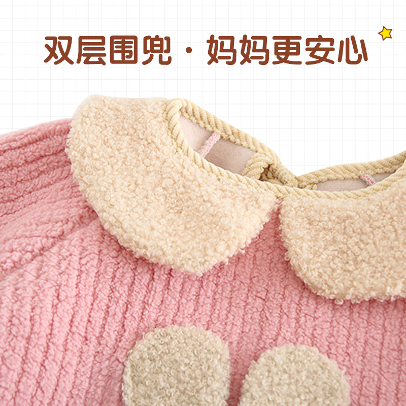 冬季宝宝保暖反穿衣小孩防水防脏长袖围裙儿童外穿羊羔绒护衣可爱