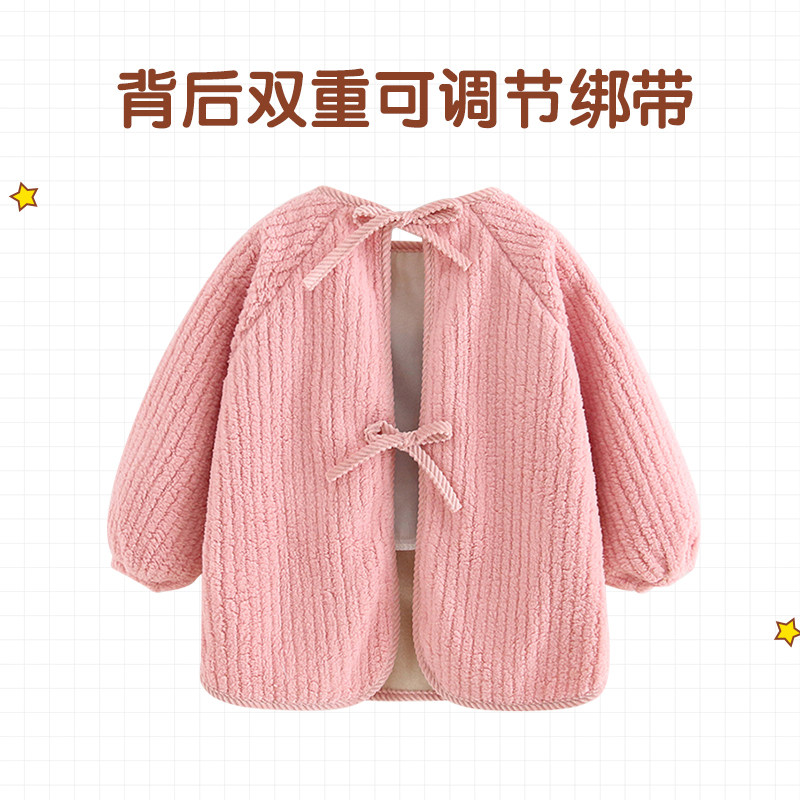 宝宝罩衣儿童加绒加厚保暖反穿衣小孩防水防脏长袖围裙吃饭护衣冬