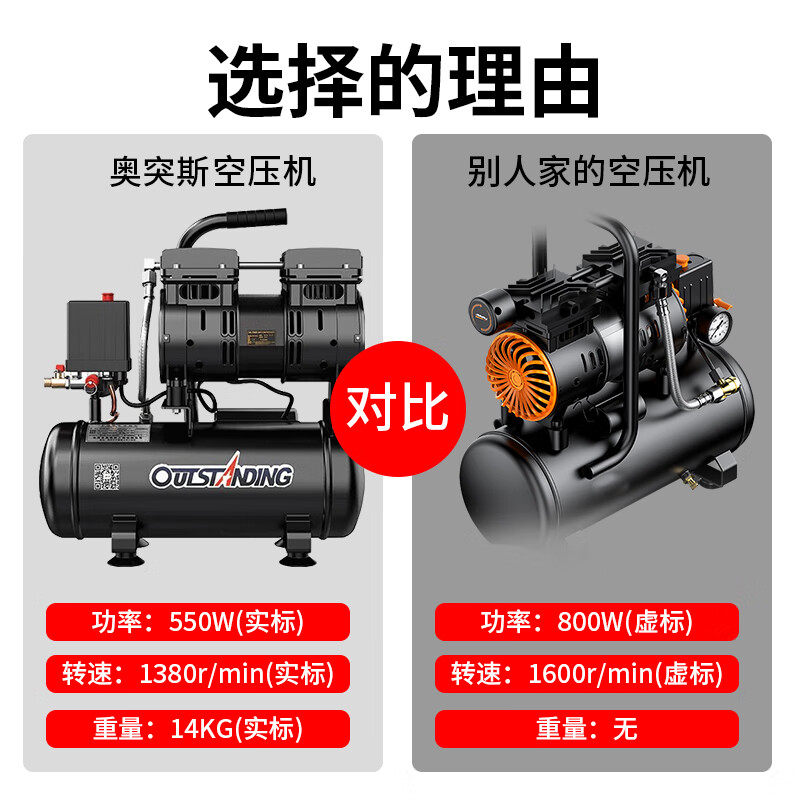 奥突斯无油静音220V空气压缩机木工打气喷漆高压充气泵空压机