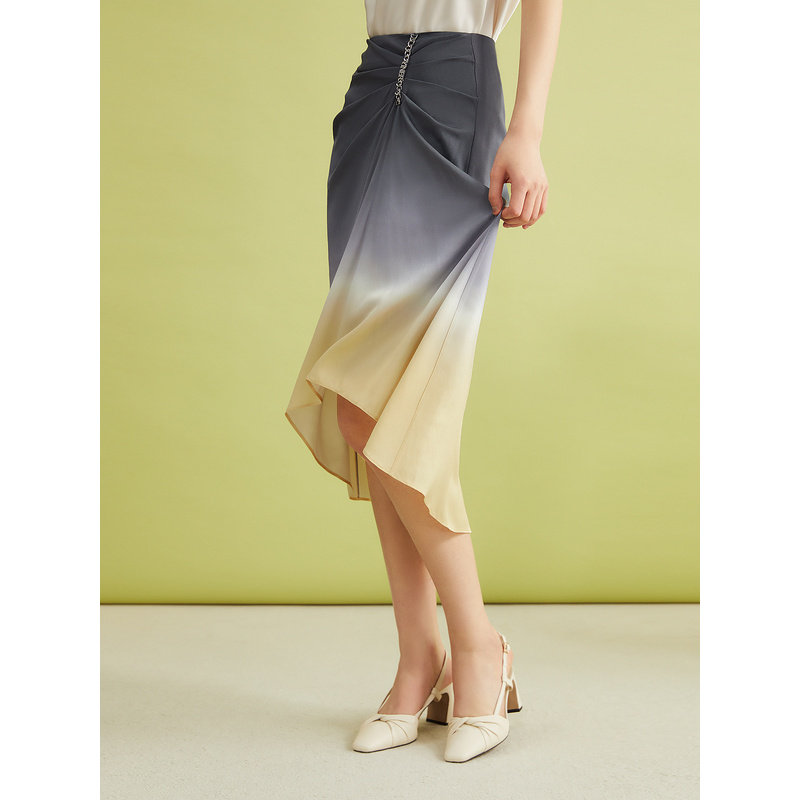 【博主同款】YINER音儿女装夏季弹力真丝斜纹绸光泽半身裙