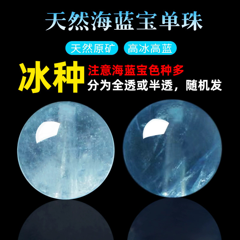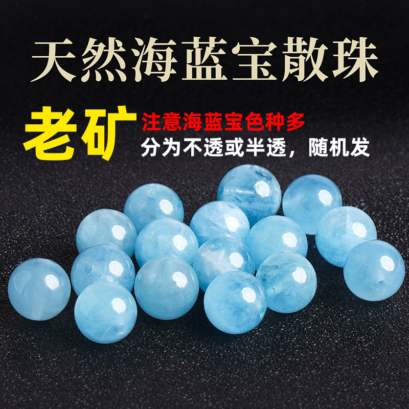 9A天然冰种海蓝宝散珠子魔鬼蓝隔珠多宝手串diy水晶手链单珠原矿