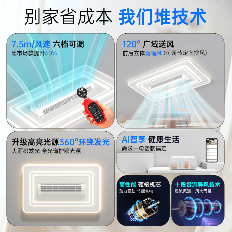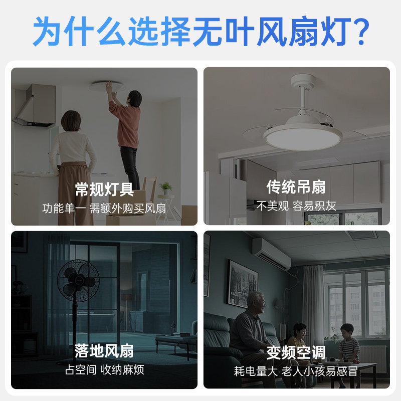 2025新款客厅灯无叶风扇灯极简高档卧室客厅静音灯吹风照明一体灯