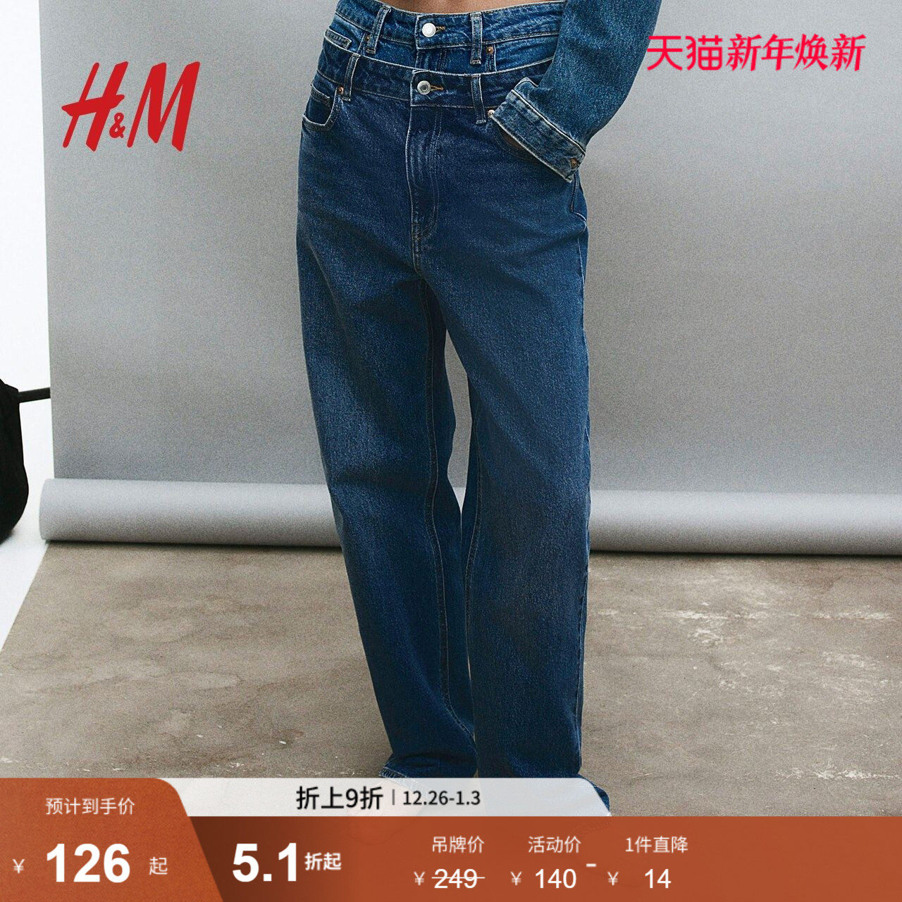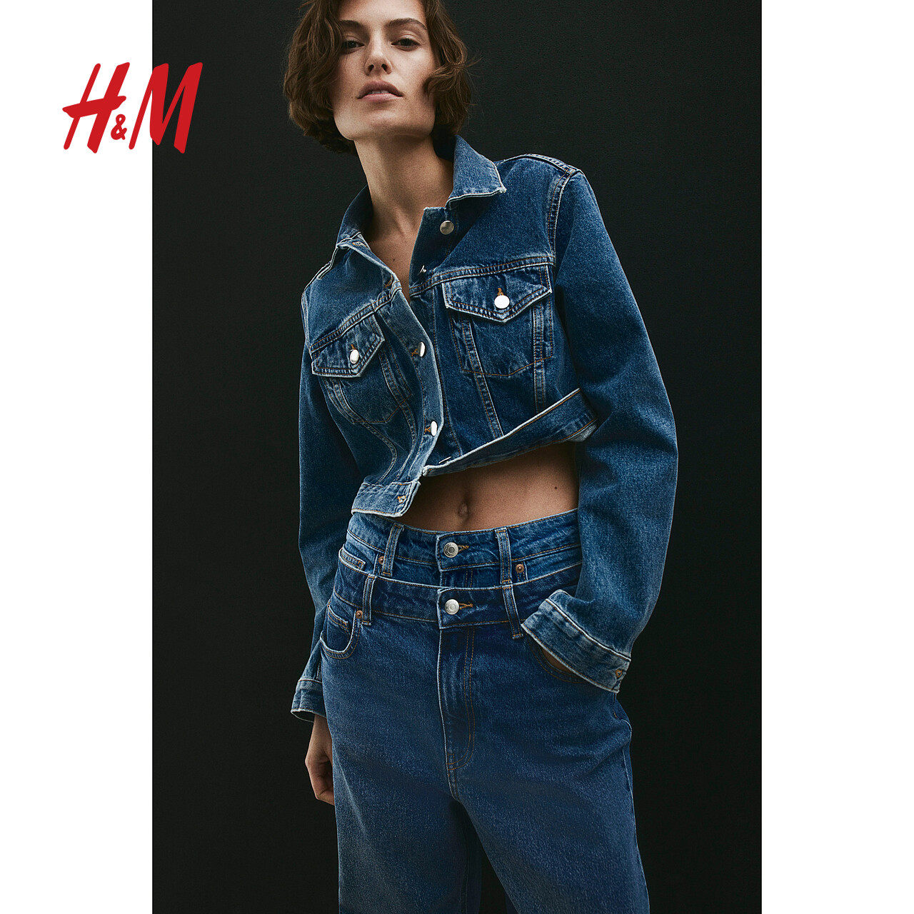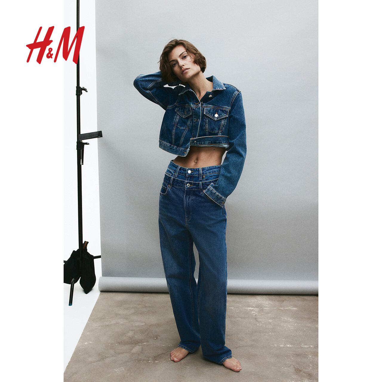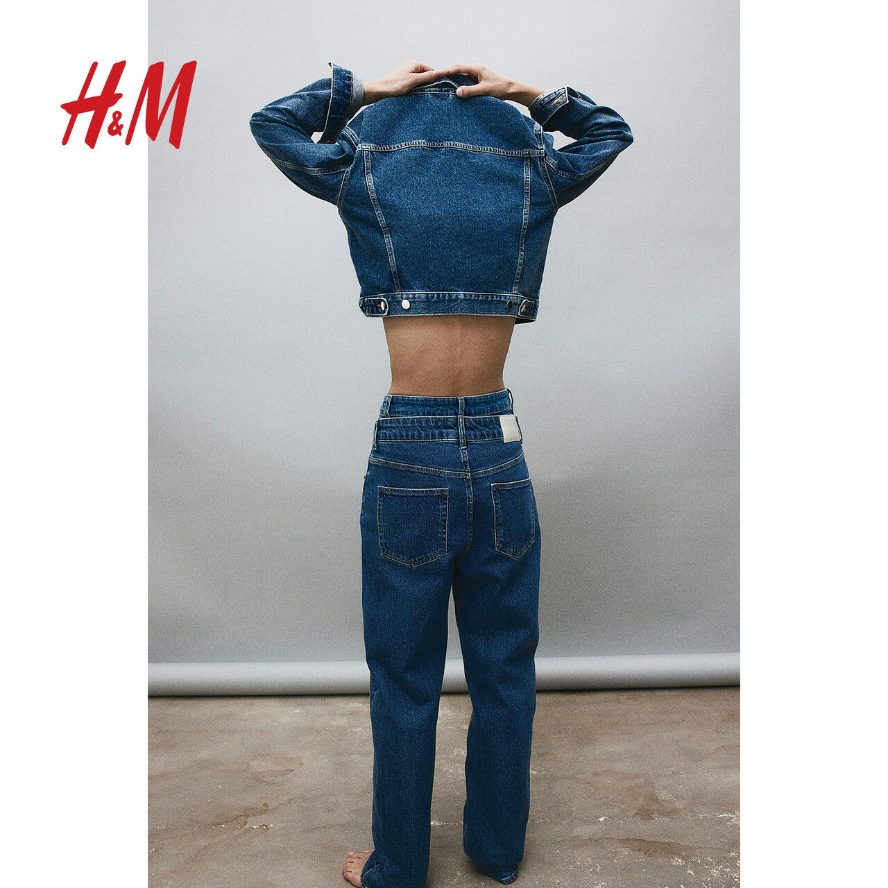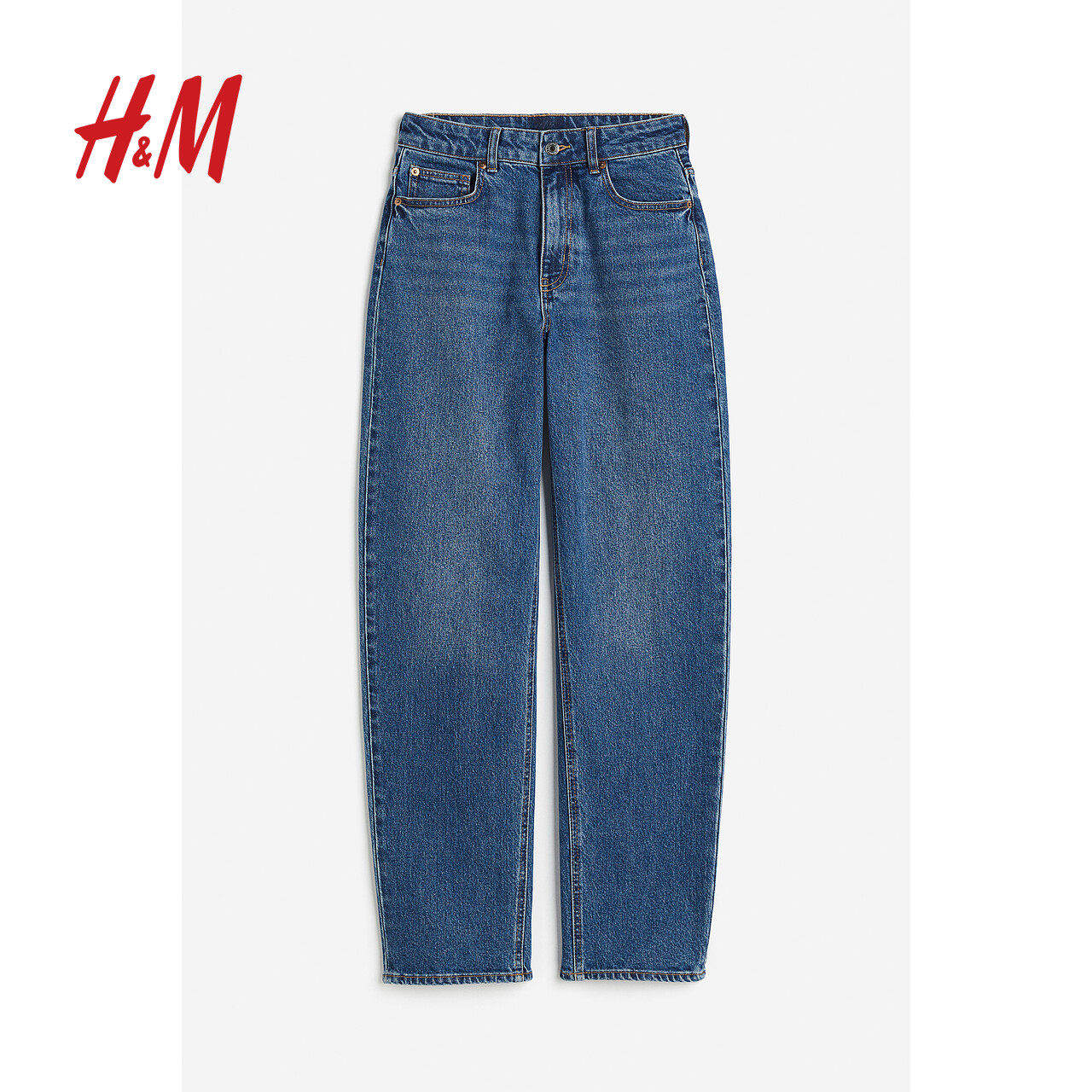 HM女装牛仔裤秋季时尚简约高腰窄脚弹性锥形长裤1208009
