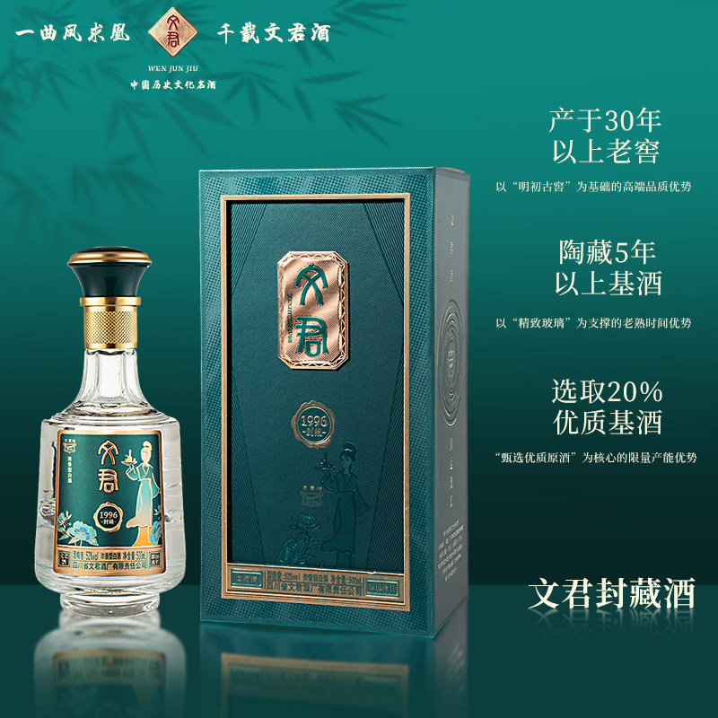文君酒1996封藏52度浓香型白酒礼盒纯粮酿造高端整箱金质瓶装