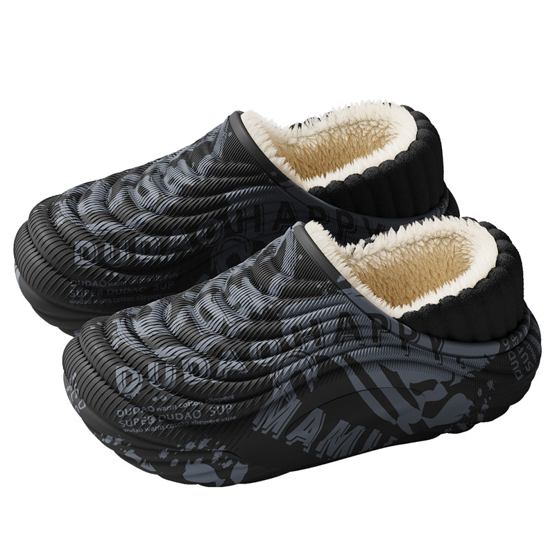 防水棉拖鞋男士2025新款外穿包跟厚底保暖防滑加绒包头棉鞋男标准