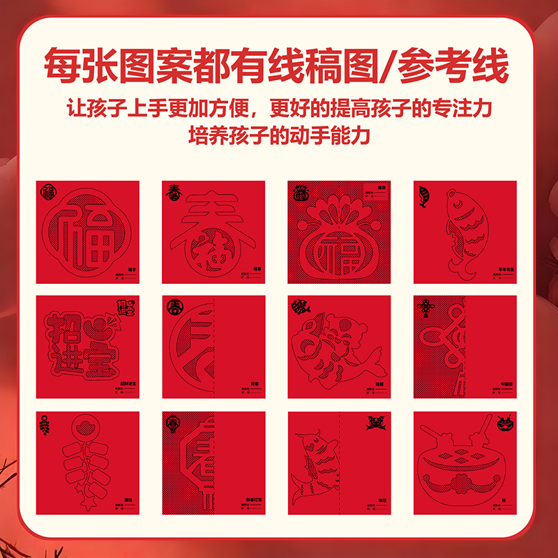 新年剪纸工具套装中国风窗花窗花剪纸儿童元旦春节手工纸DIY制作幼儿园小学生剪纸专用纸