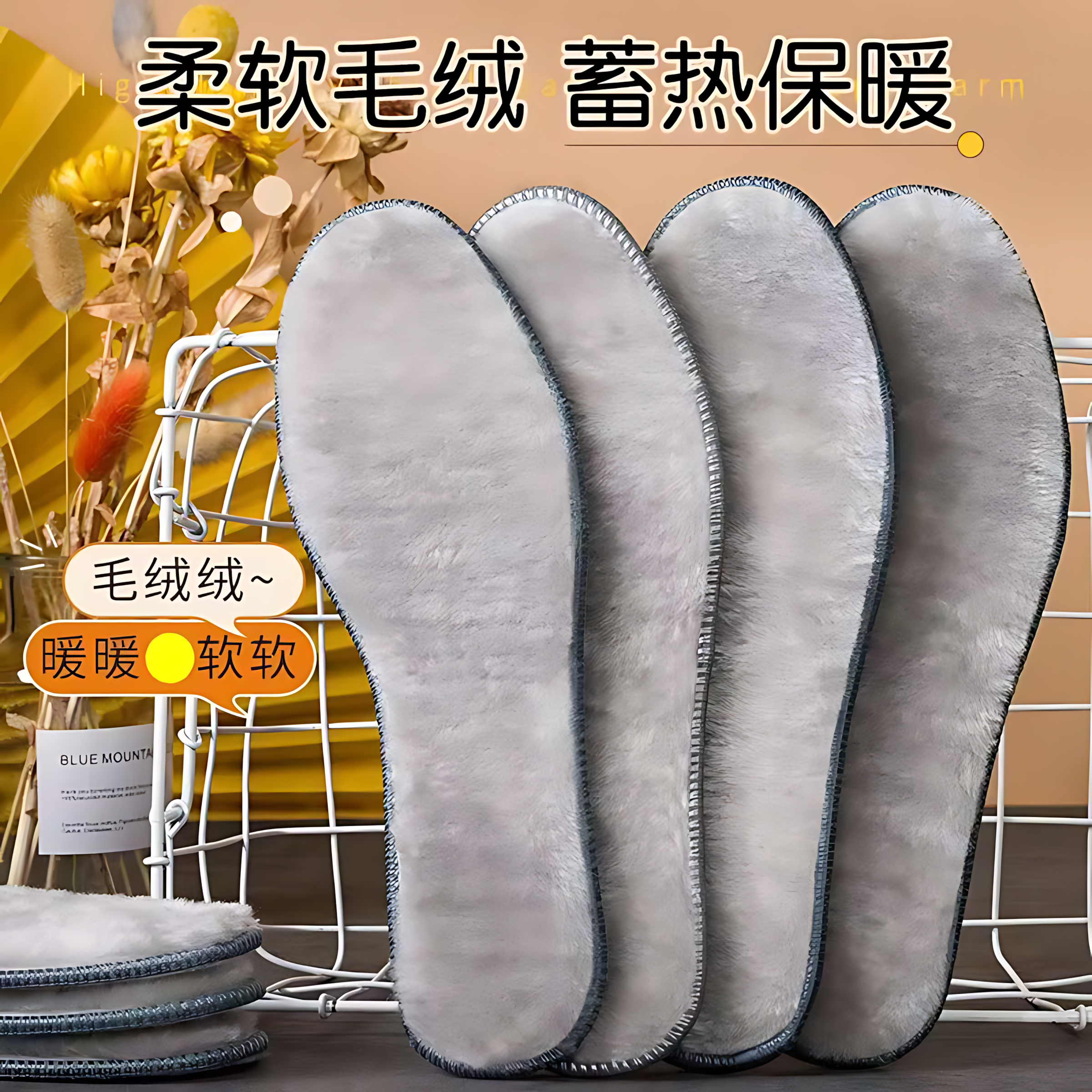 羊毛鞋垫冬季棉鞋垫透气吸汗防臭皮毛仿澳洲羊毛加绒加厚保暖鞋垫
