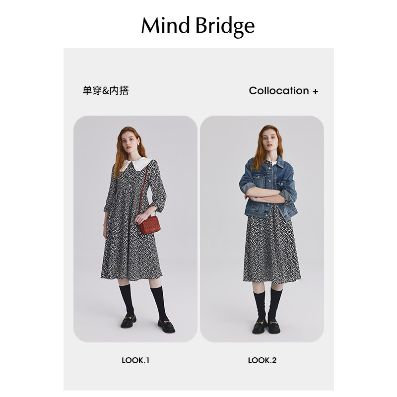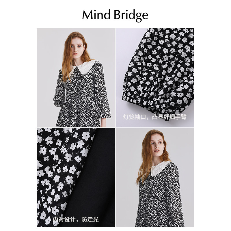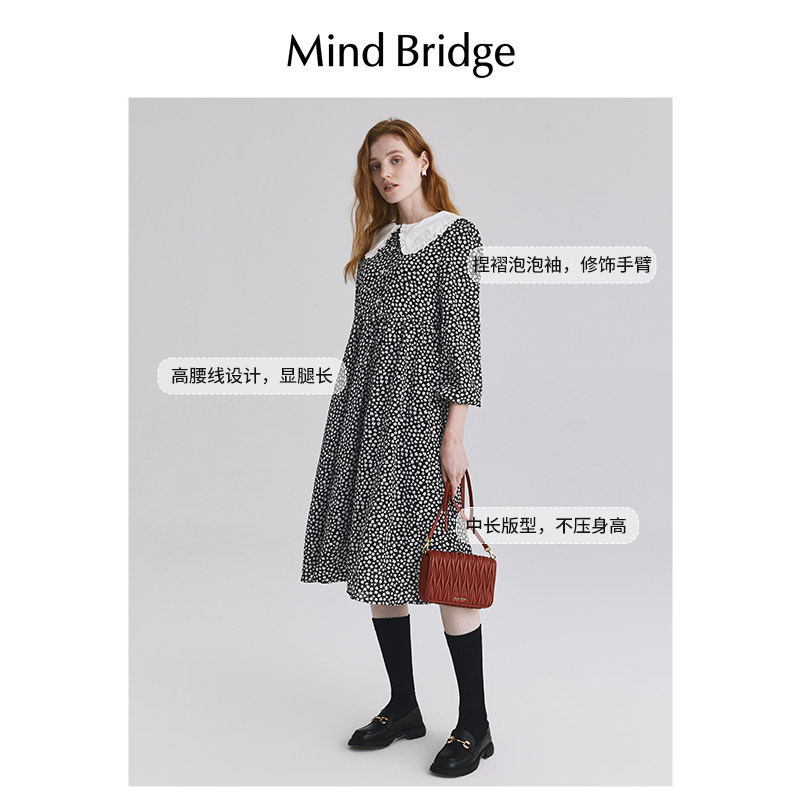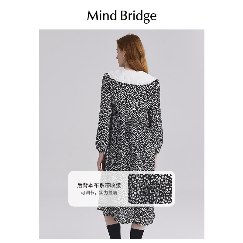 MB MindBridge秋季娃娃领碎花裙2025新款长袖连衣裙女中长款裙子